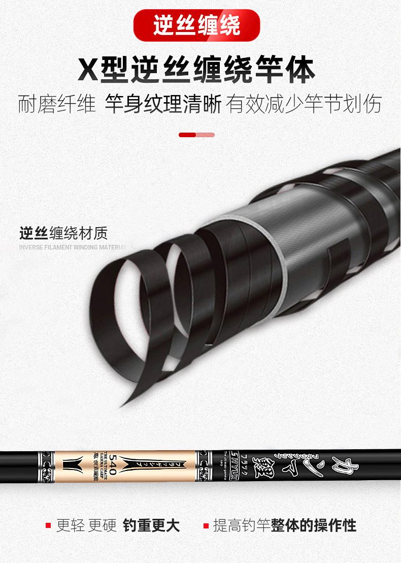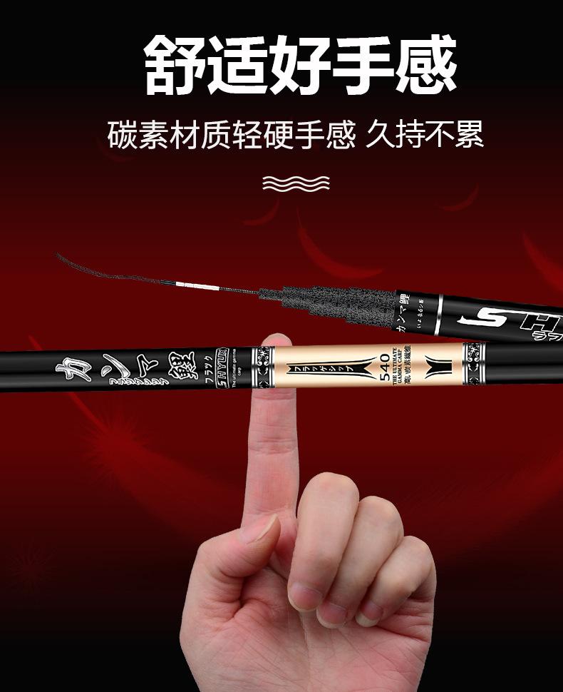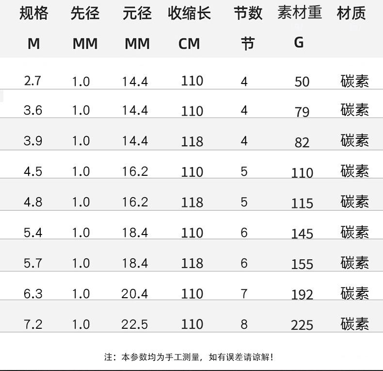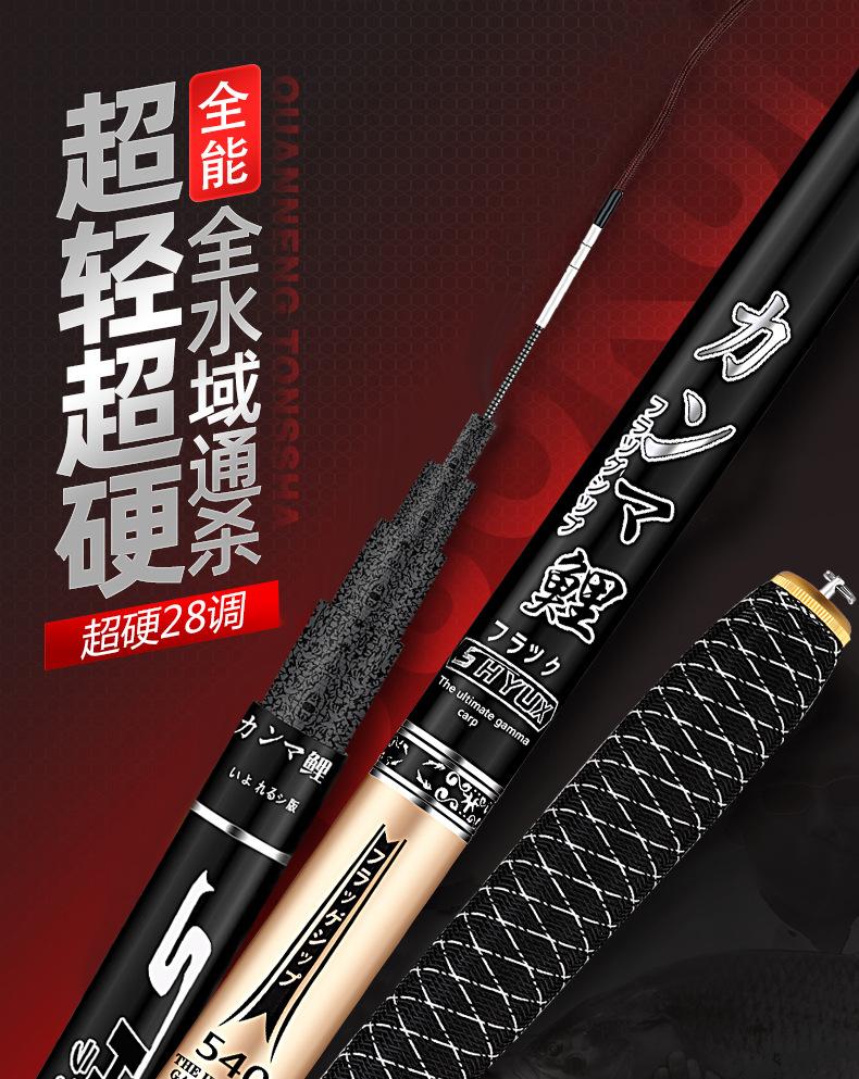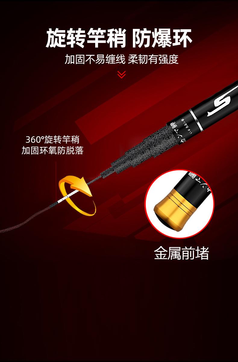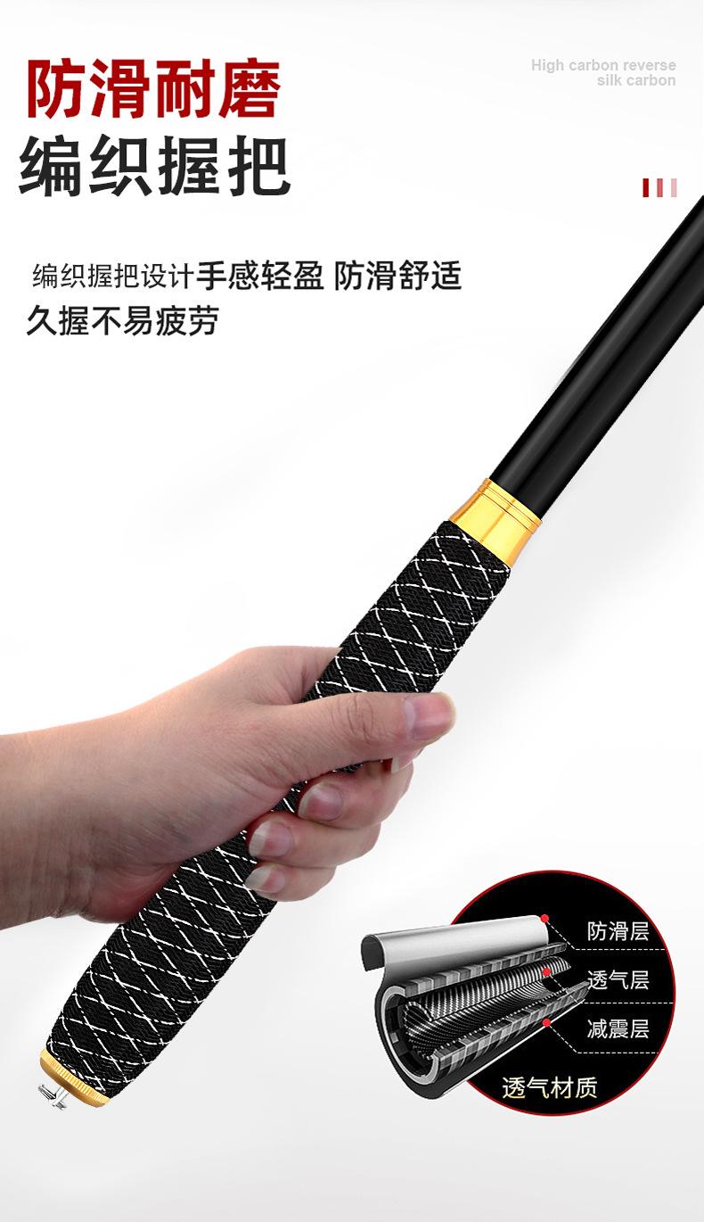 Este producto es producido y vendido en grandes cantidades por nuestra empresa, y la sección del mango está pintada con pintura de alta calidad. Los tamaños se dividen en 2,7 metros, 3,6 metros, 3,9 metros, 4,5 metros, 4,8 metros, 5,4 metros, 5,7 metros, 6,3 metros y 7,2 metros para que usted elija. La tonalidad de esta caña de pescar es de 28 y 37 grados, ideal para la pesca recreativa en aguas abiertas en diversas aguas y con una excelente sensibilidad para una variedad de peces. Bienvenidos a realizar pedidos. Se pueden fabricar productos personalizados para grandes cantidades. Si tiene alguna pregunta, consulte con el servicio de atención al cliente.