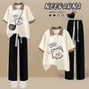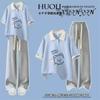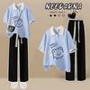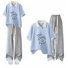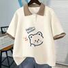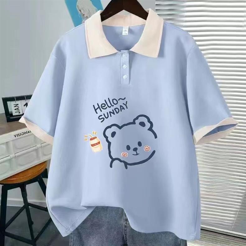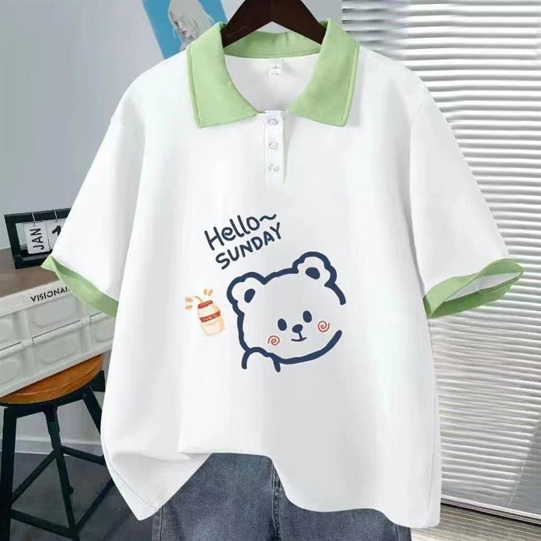 Camiseta de Verano Fina de Manga Corta para Niñas Estudiantes de Secundaria y Preparatoria 2024 Top con Cuello Polo Traje Estampado de Dibujos Animados