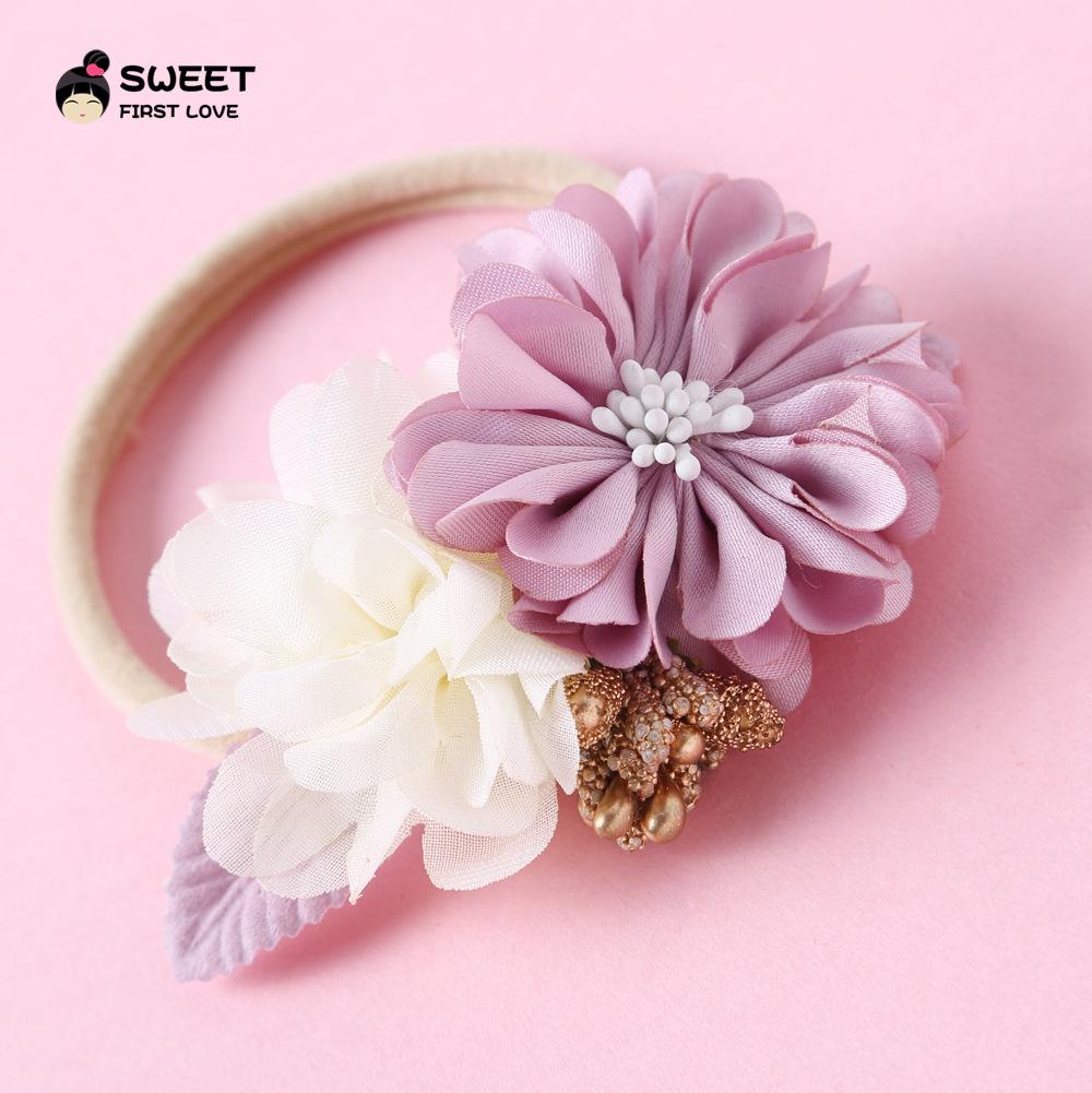 2023 Nuevos accesorios para el cabello para niños transfronterizos, diadema de nailon con costura hecha a mano europea y americana
