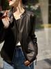 Chaqueta de Moto Corta para Mujer de Cuero de Oveja Ligero con Revestimiento, Ajustada, de Alta Calidad, Cuello Vertical Nuevo, Color Gris Elefante