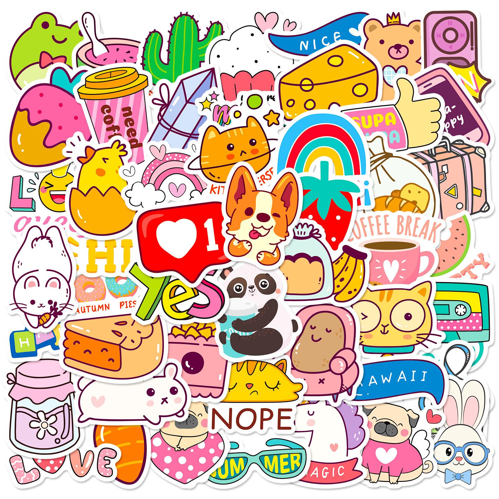 50 pegatinas coloridas de dibujos animados para decorar la vida, para equipaje transfronterizo, ordenador, taza de agua, pegatinas impermeables con grafiti personalizado.