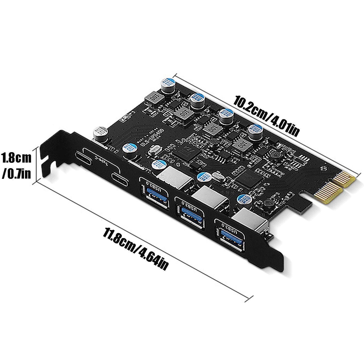 PCI-E USB3.0 5 puertos externos, 3 puertos USB-A + 2 puertos USB-C, todos capacitores sólidos, tarjeta adaptadora de comercio exterior de alta calidad ULS-UP5400