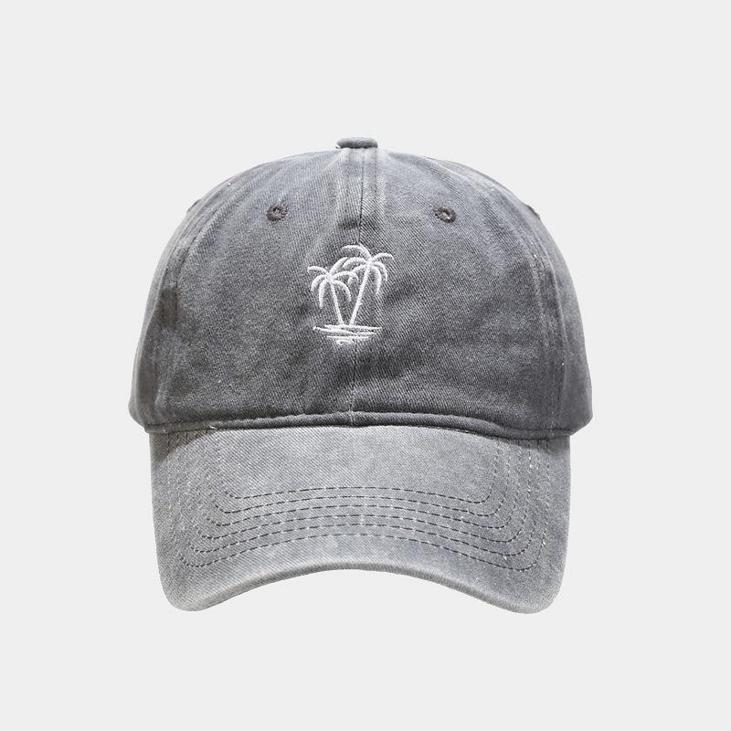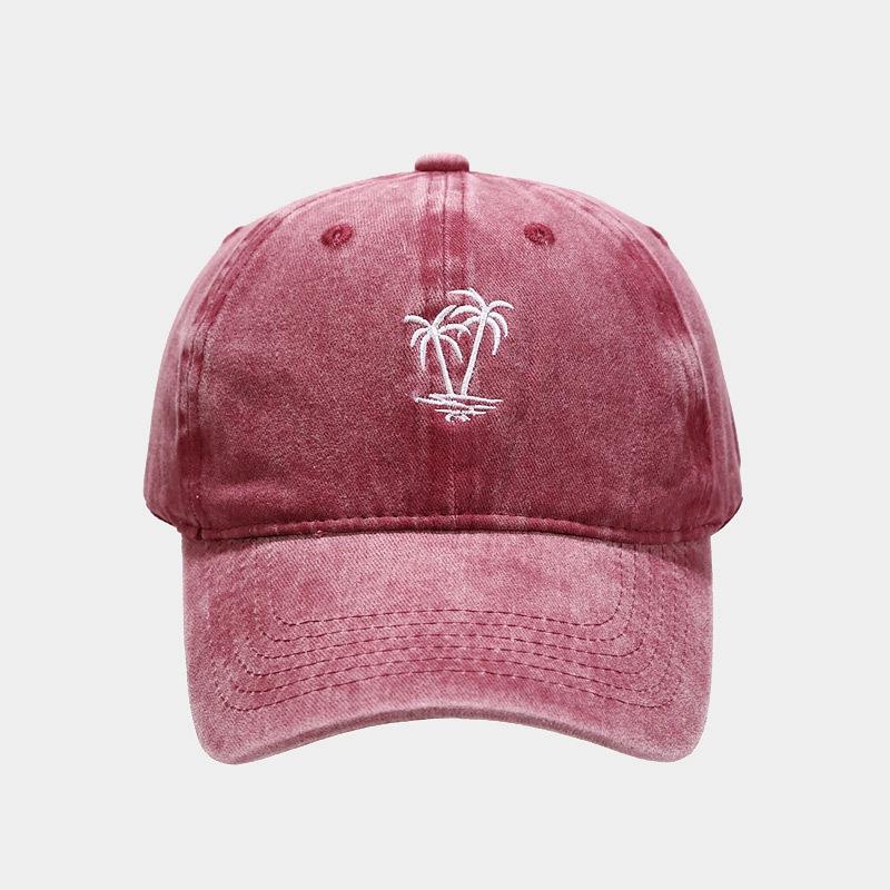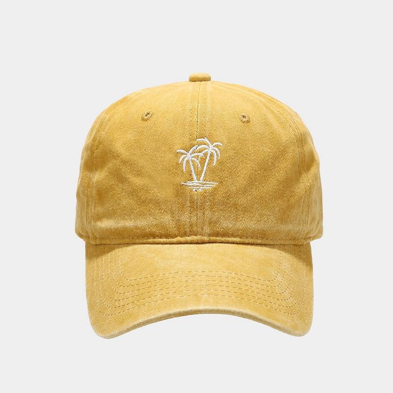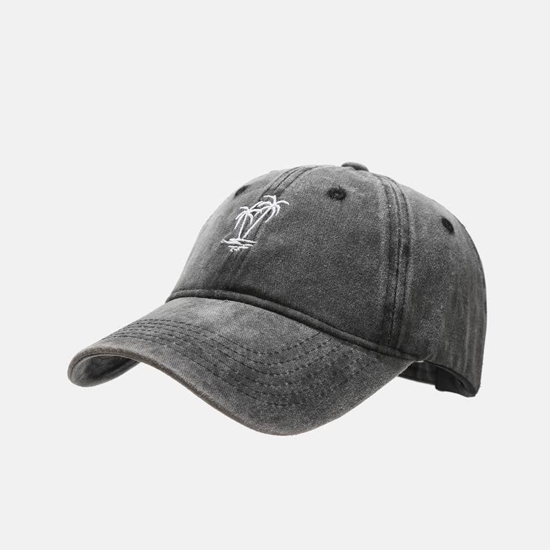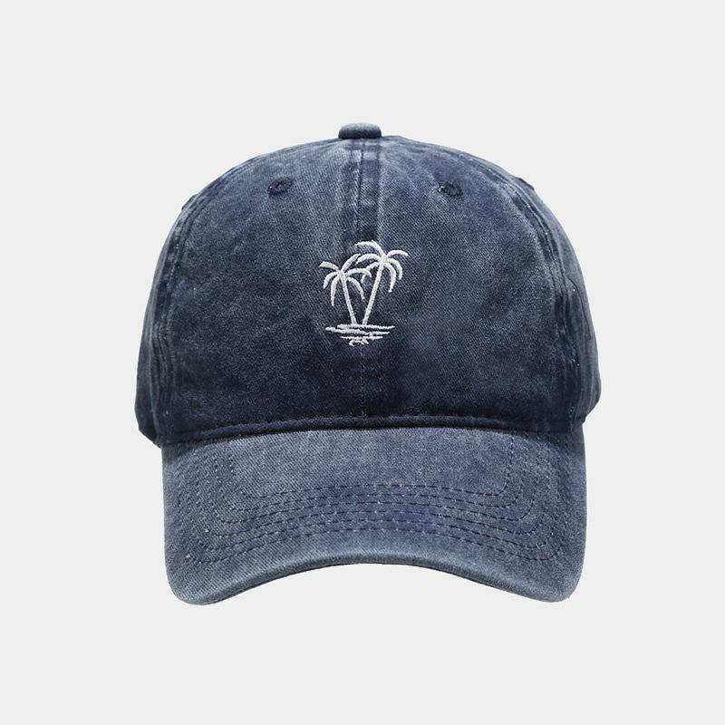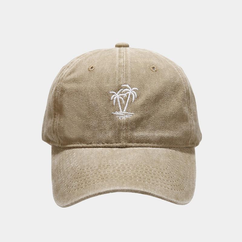 Comercio electrónico transfronterizo Amazon Nueva gorra vintage lavada con bordado de cocotero para mujer Gorra de béisbol desgastada con alero curvo para hombre Tide
