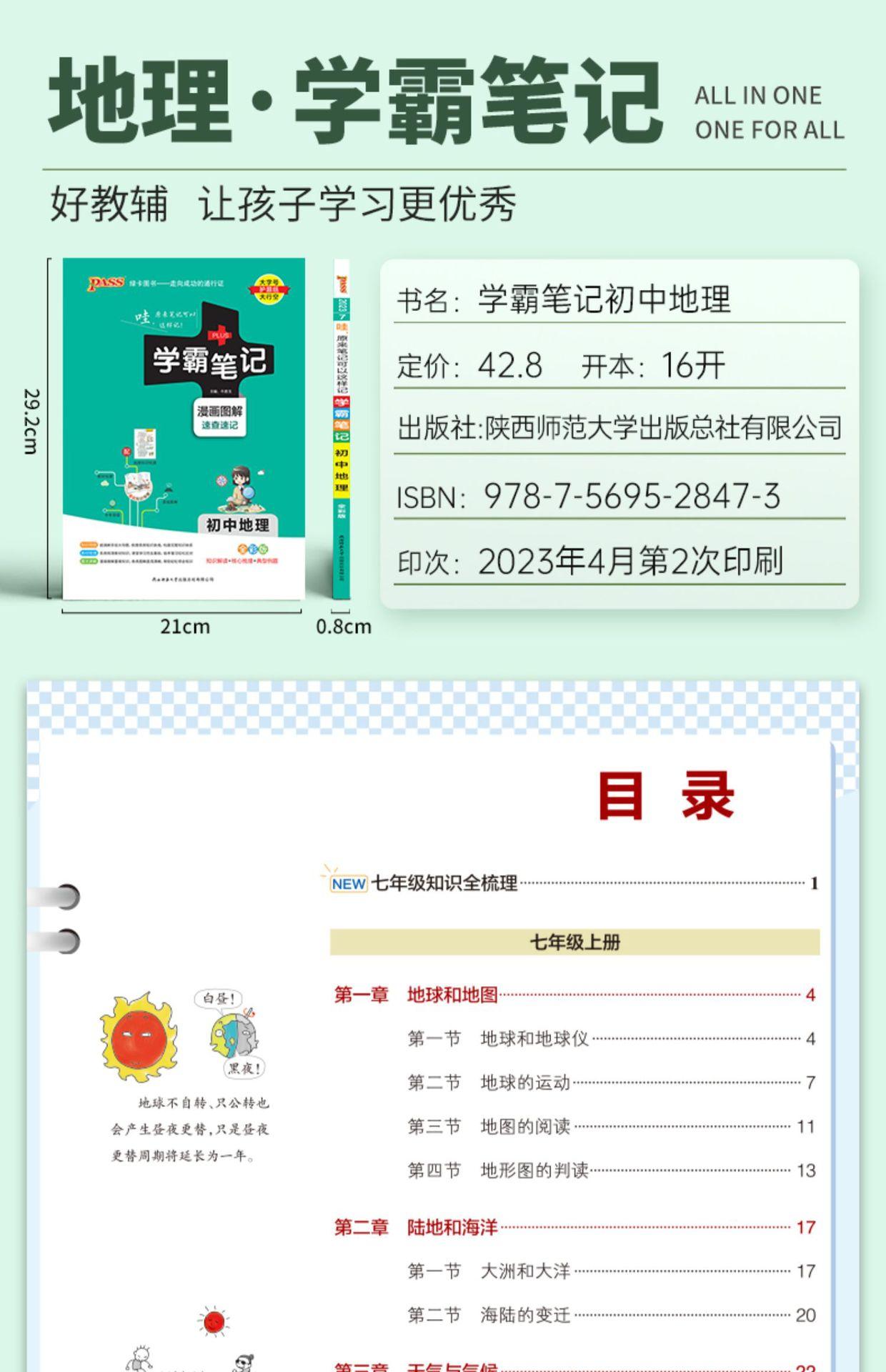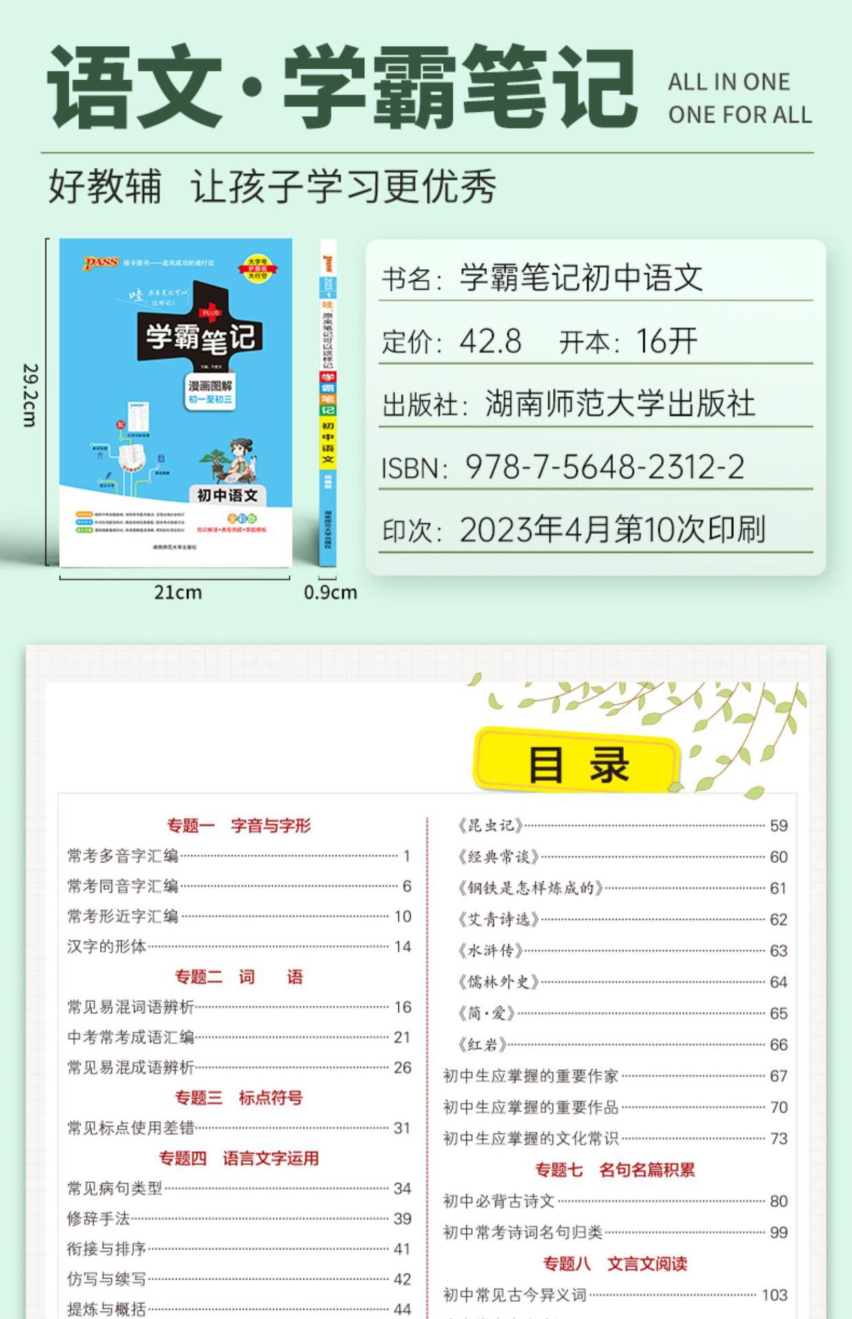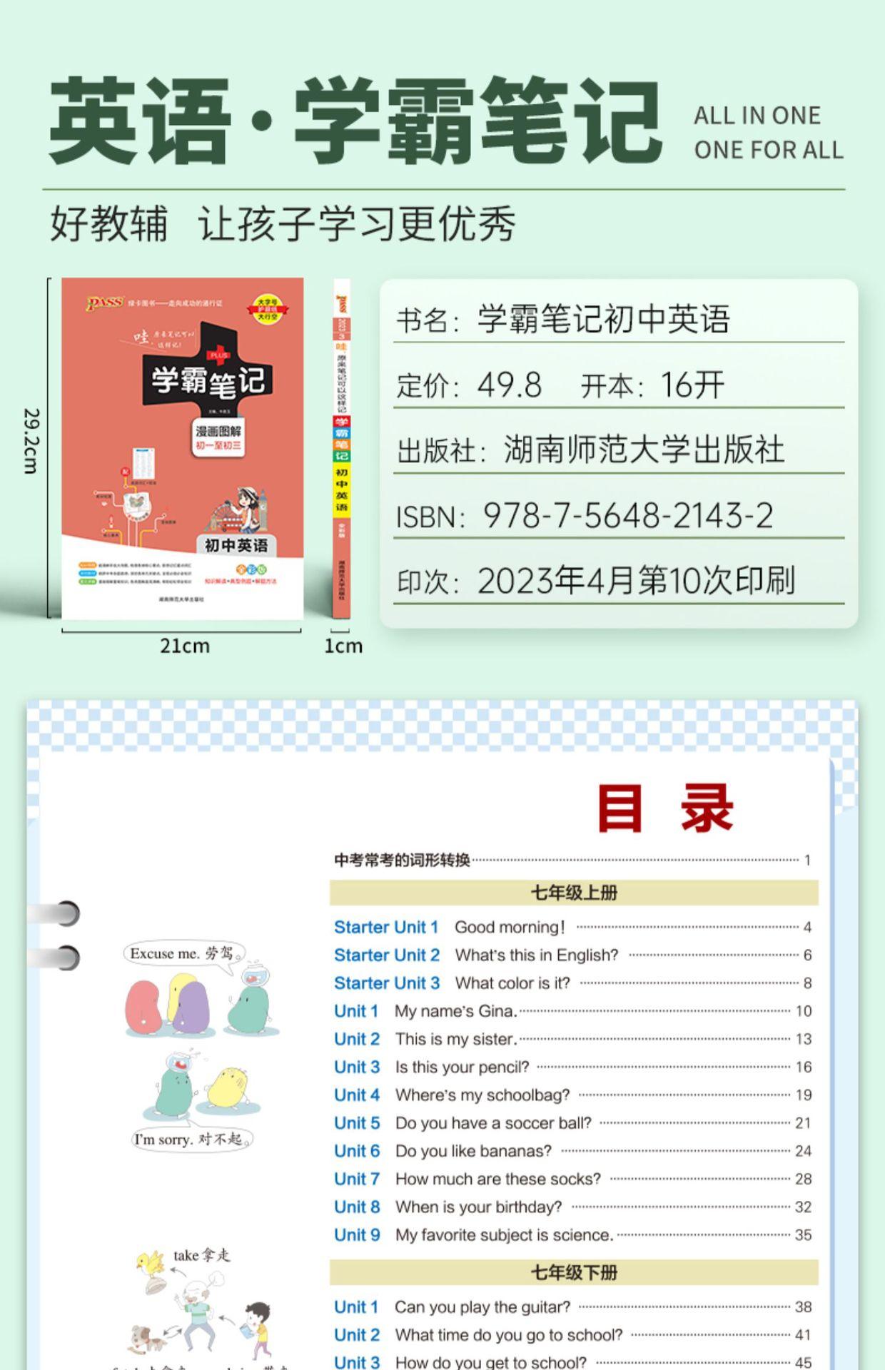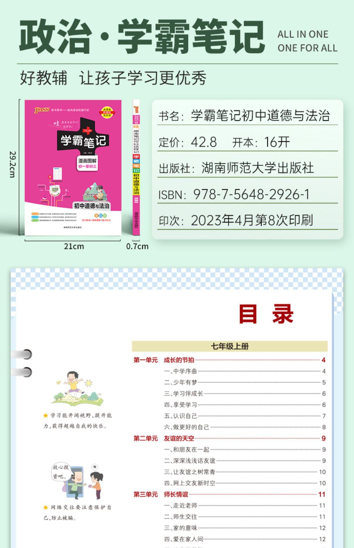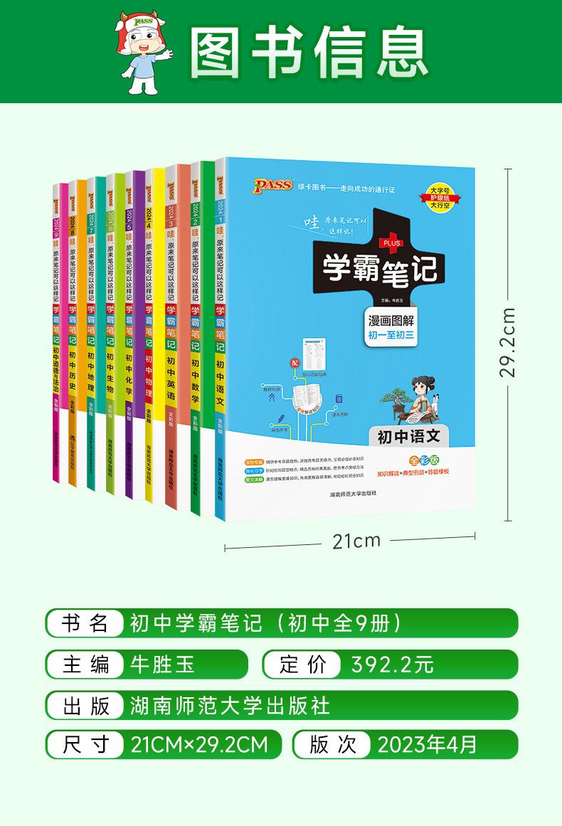Xueba anota notas de secundaria, chino, matemáticas, inglés, física, química, biología, política, geografía histórica, maestría, notas de escritura a mano.