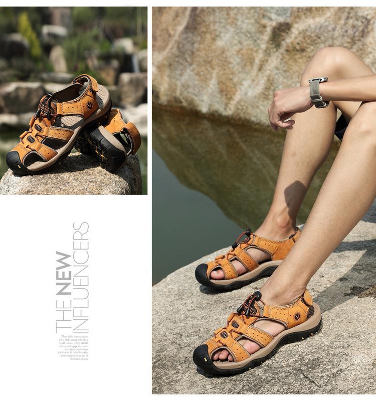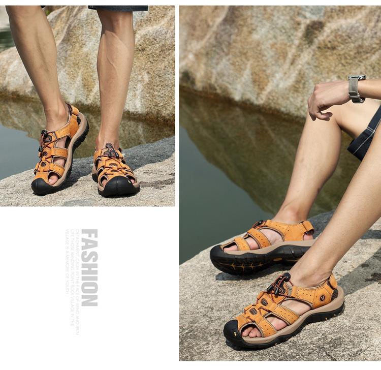 Verano nueva capa superior piel de vaca baotou zapatos de playa zapatos de hombre exterior antideslizantes zapatos casuales sandalias de hombre cuero de hombre