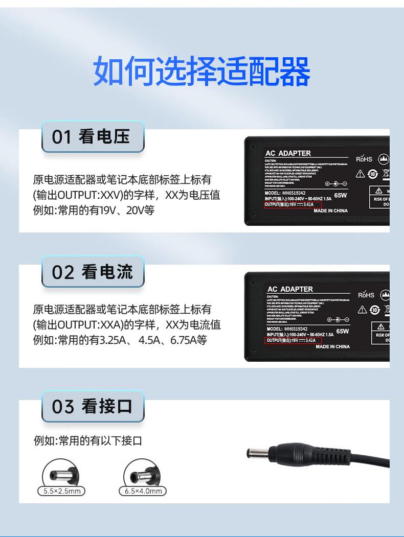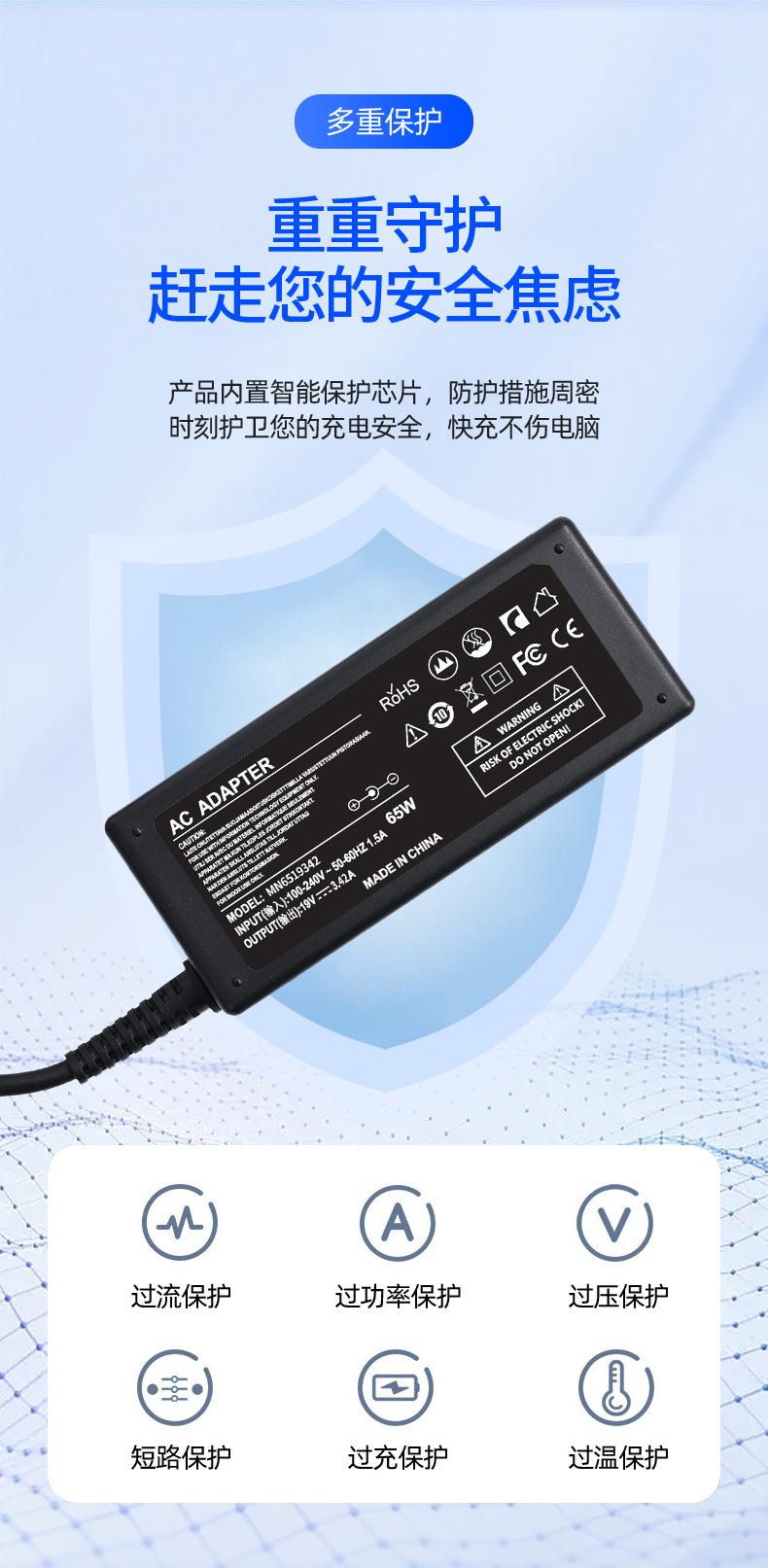 Adecuado para adaptador de corriente para portátil Toshiba de 65 W, interfaz 19 V 3,42 A, 5,5 x 2,5, calidad original, baja temperatura.