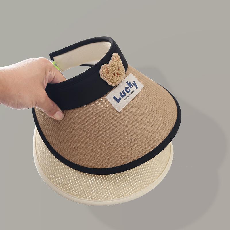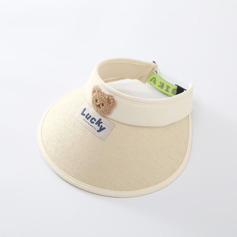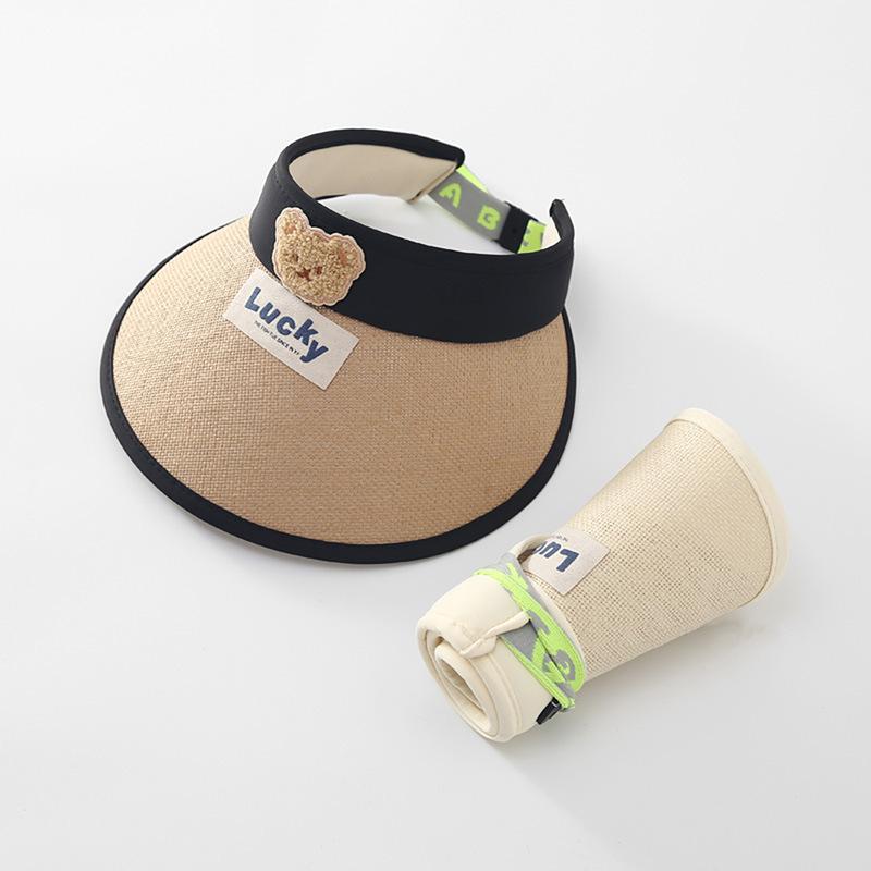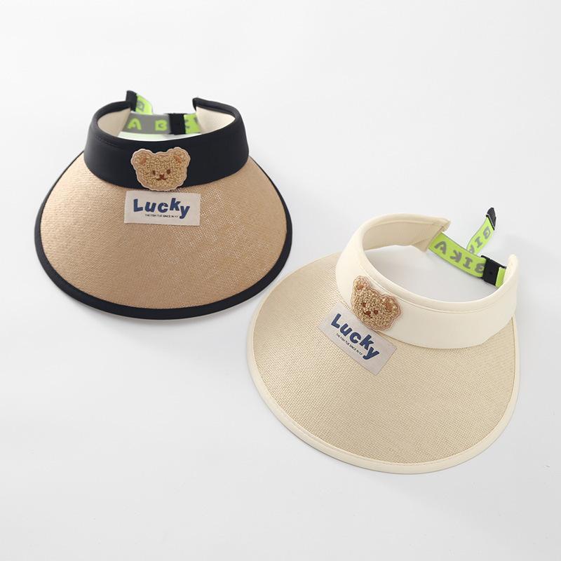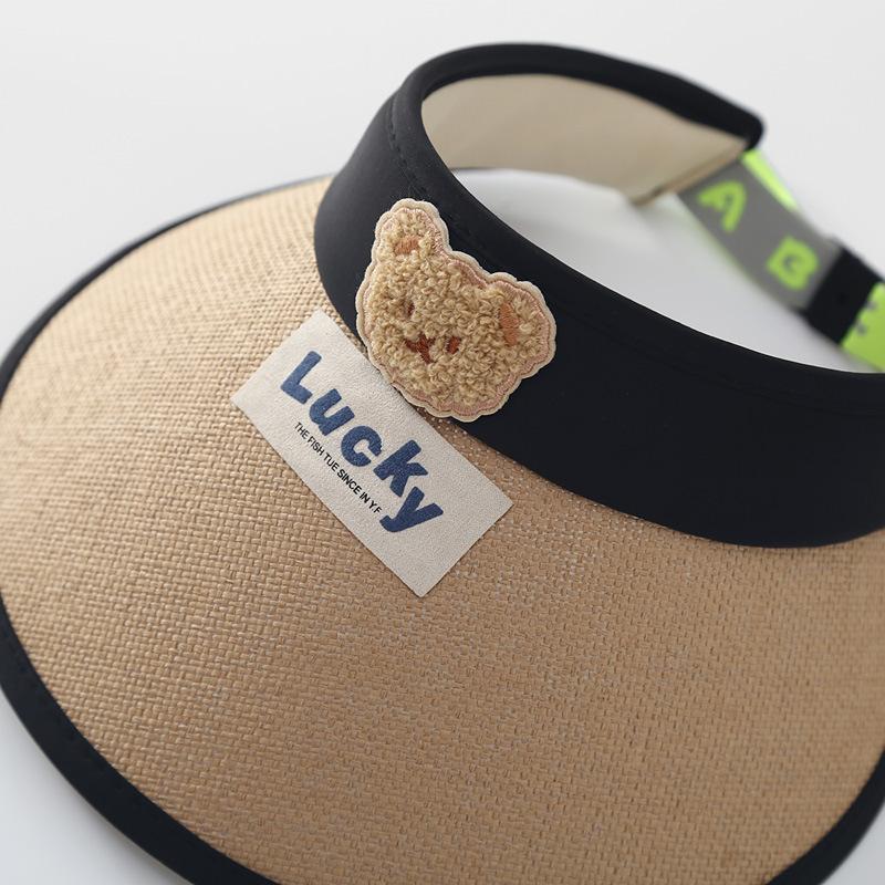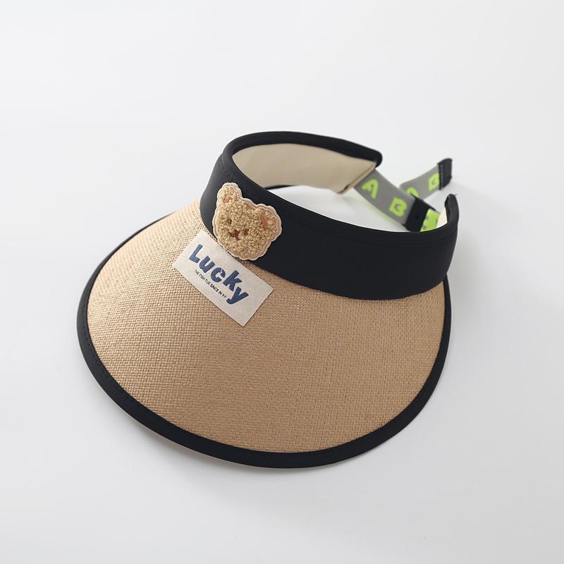 Beige-[Lucky bear] (straw)-Children's empty hat, Khaki-[Lucky Bear] (Straw)-Children's Empty Hat