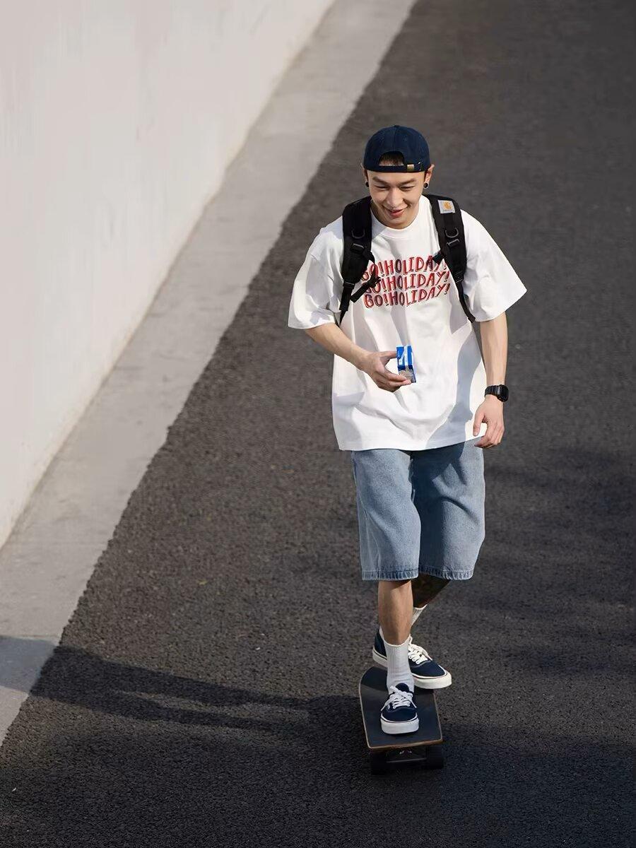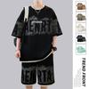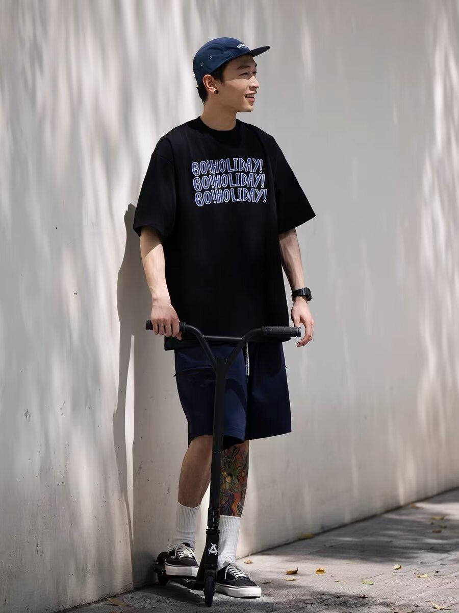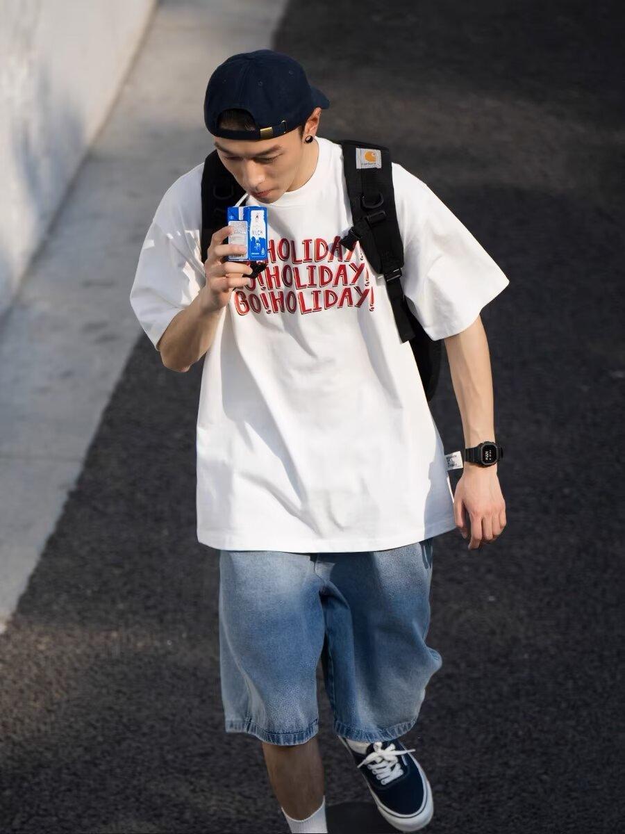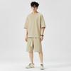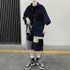 Traje de verano japonés con camiseta de manga corta y pantalones cortos vaqueros holgados para hombre, ropa deportiva para estudiantes guapos.