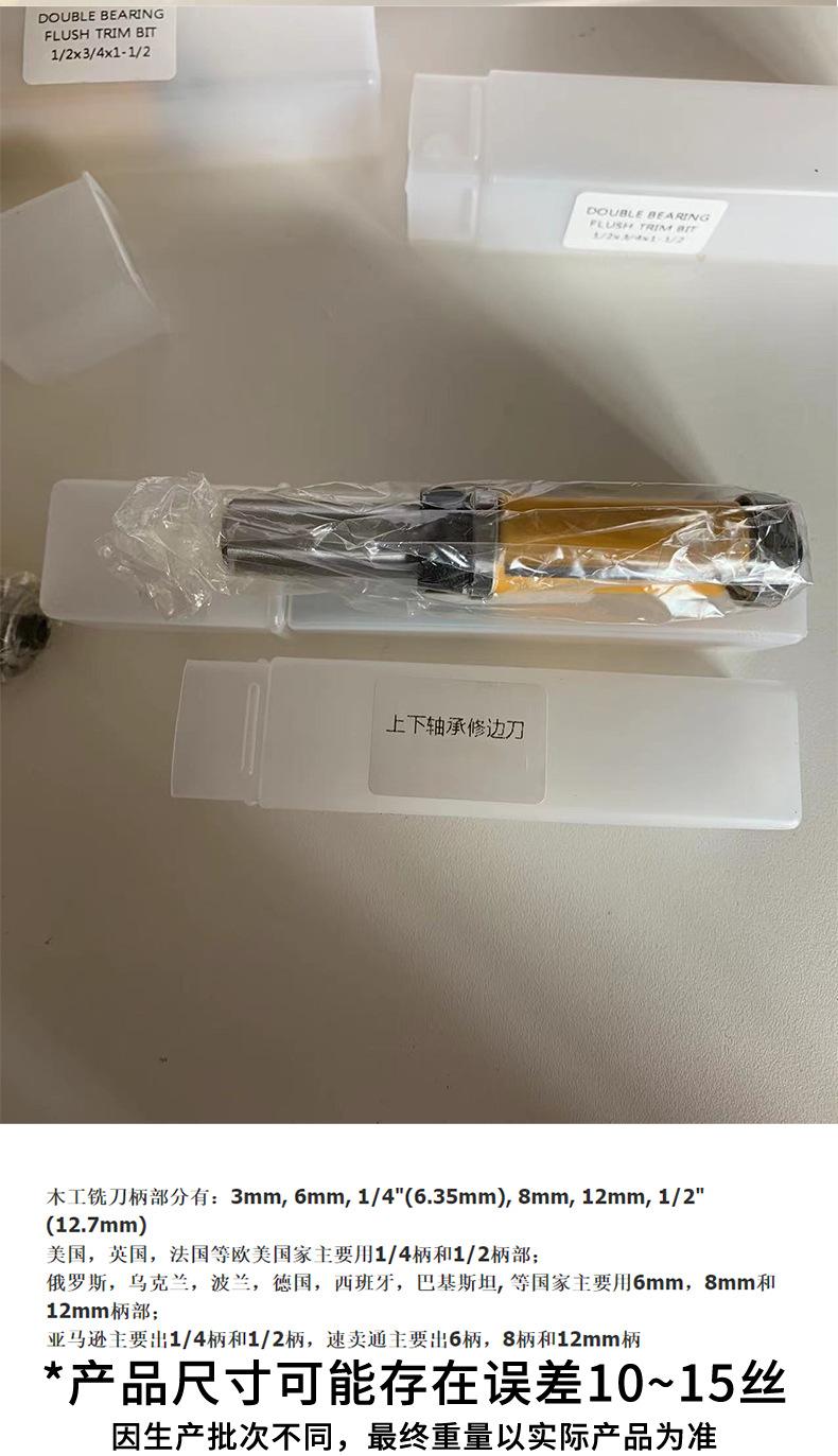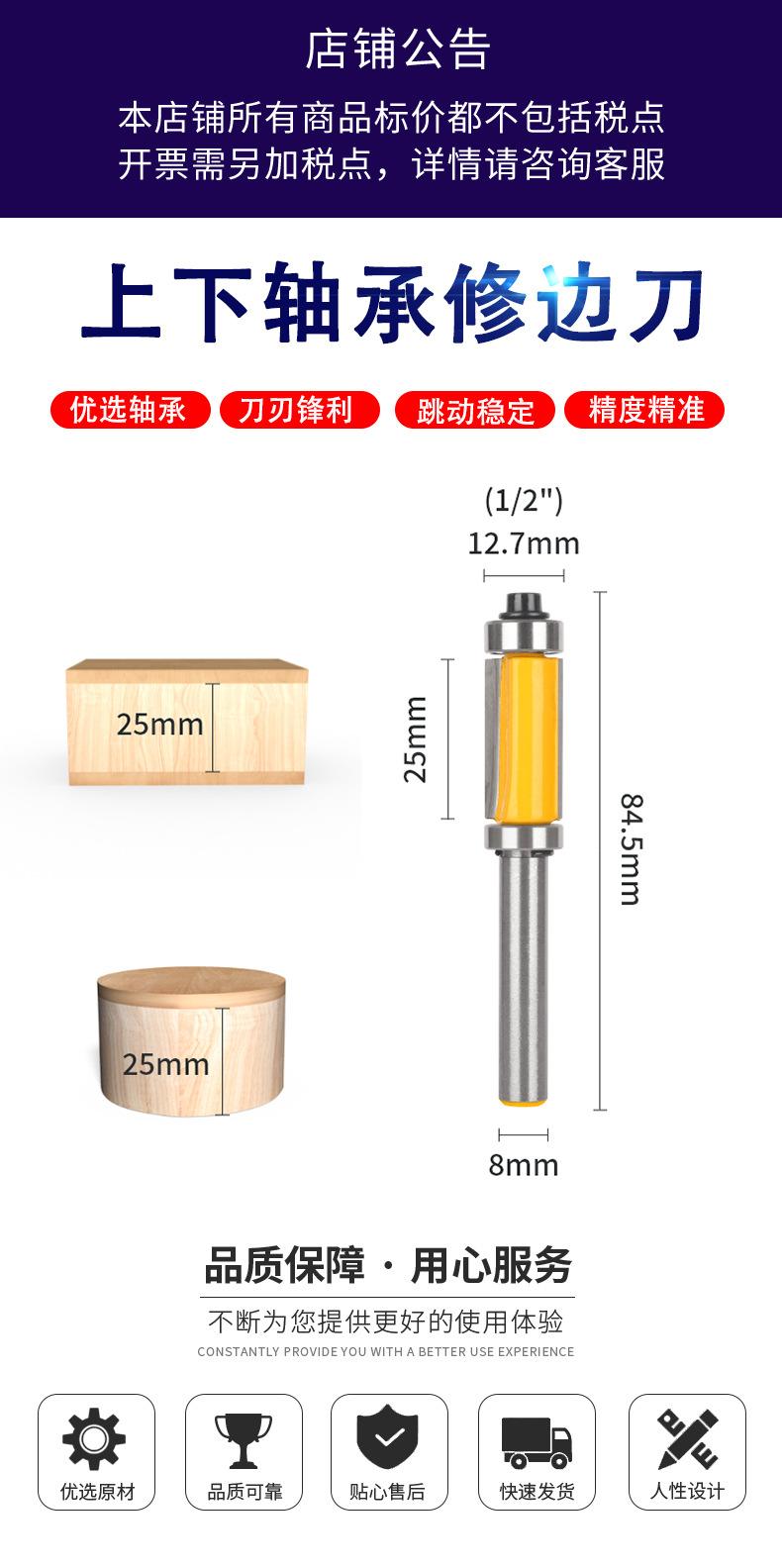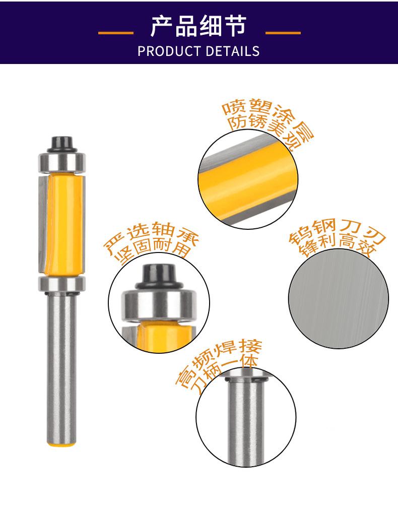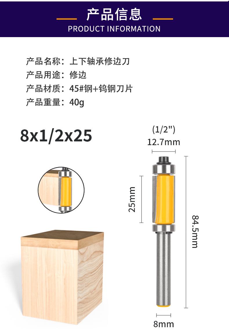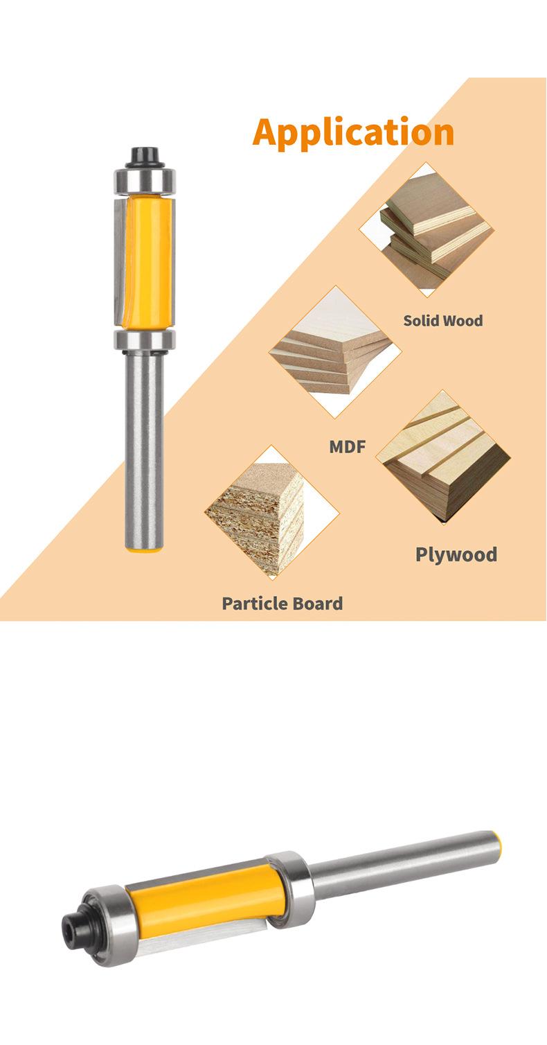 Fresa de corte con cojinetes superiores e inferiores de 8 mangos con cojinete de doble filo, fresa de corte recta, fresa de corte para carpintería