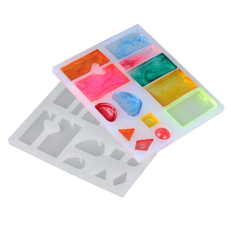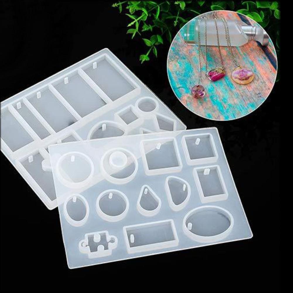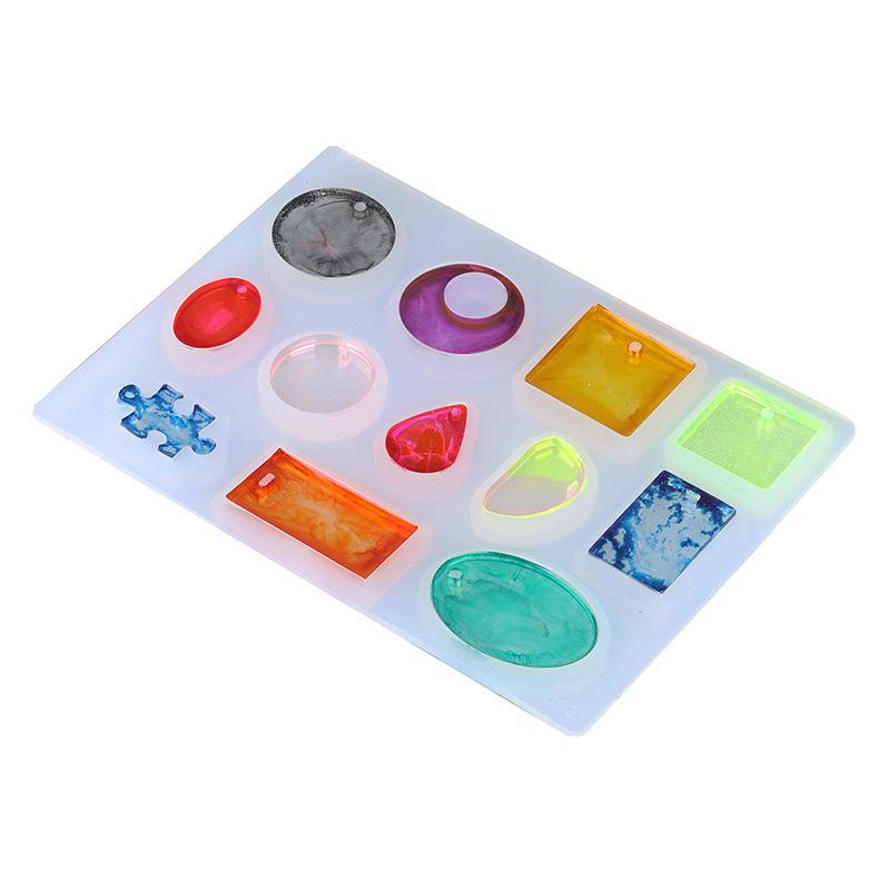 Molde de silicona para colgantes, colgantes, joyas, collares, forma de gota de cristal, cuadrado, ovalado, plano, con agujeros.