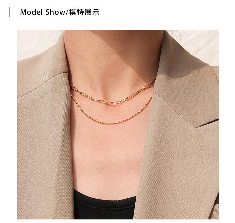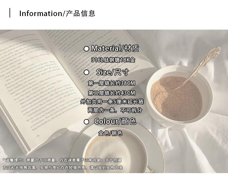 Collar de cadena de doble capa versátil, básico y sencillo, estilo francés, con cadena de clavícula femenina versátil, joyería de acero de titanio transfronterizo.