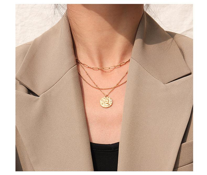 Compra Collar de cadena de doble capa versátil, básico y sencillo, estilo francés, con cadena de clavícula femenina versátil, joyería de acero de titanio transfronterizo. al por mayor en Joom.pro