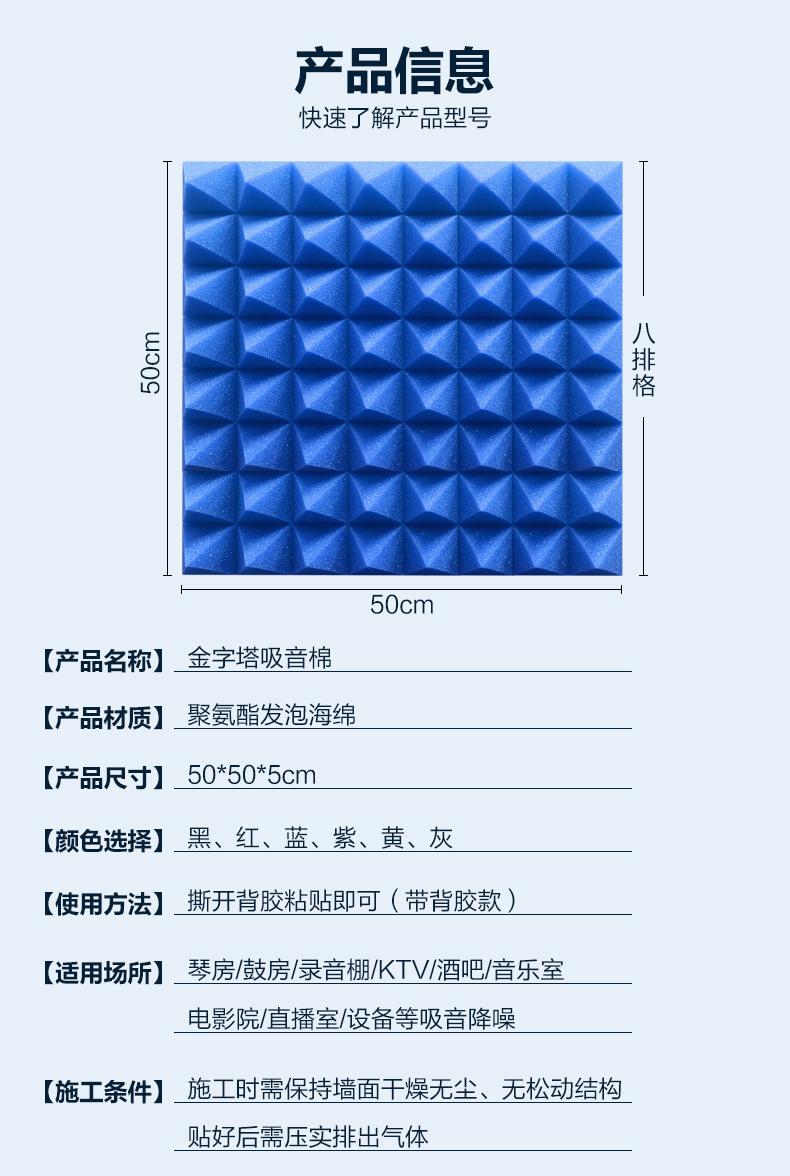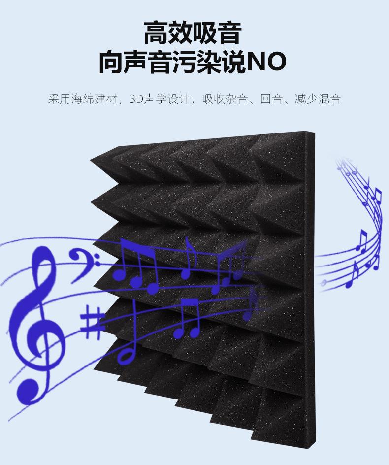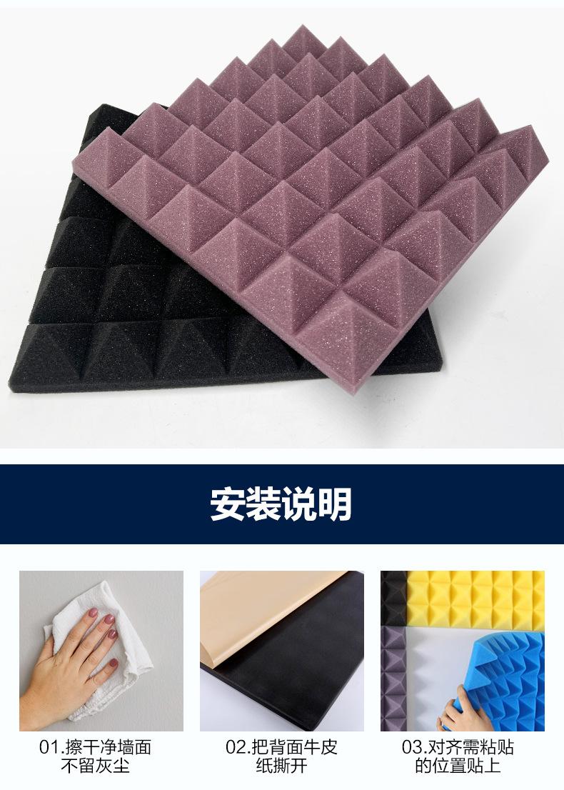 Algodón auto-adhesivo de absorción de sonido piramidal de PU, aislamiento acústico, sala de batería, estudio, estudio en vivo, adhesivo, protección ambiental, retardante de llama, algodón fonoabsorbente