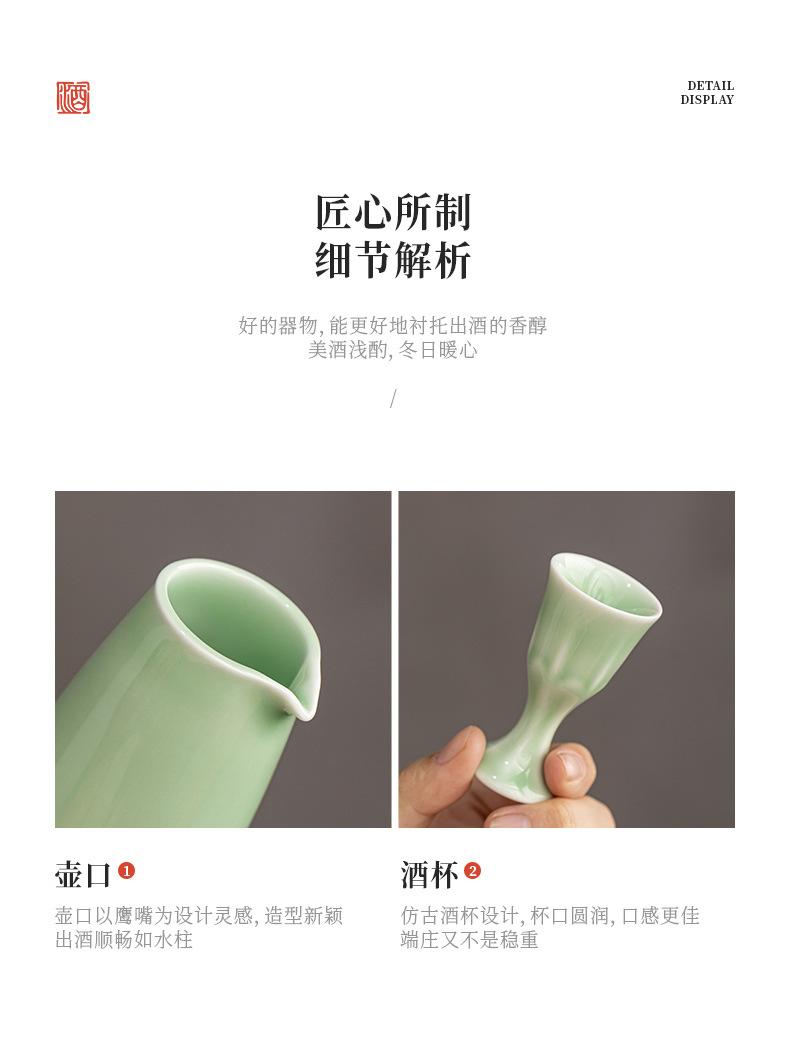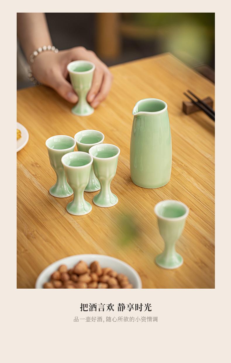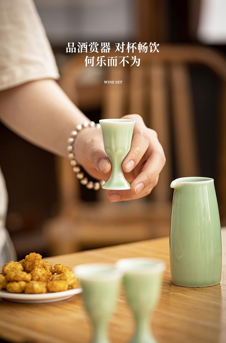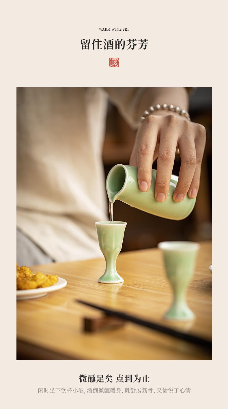 Juego de vino de celadón antiguo, regalo para el hogar, caja de regalo, dispensador de licor, vaso de licor de cerámica vintage, una taza