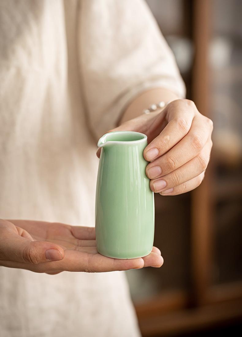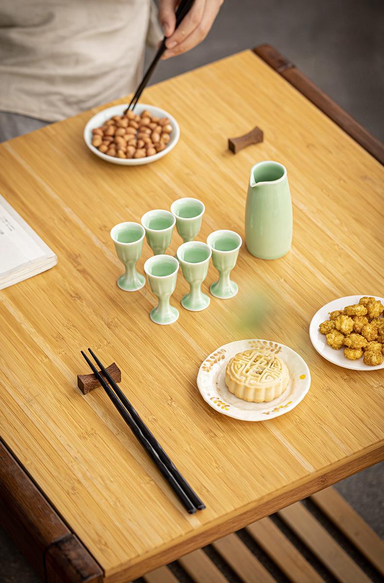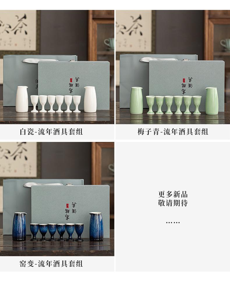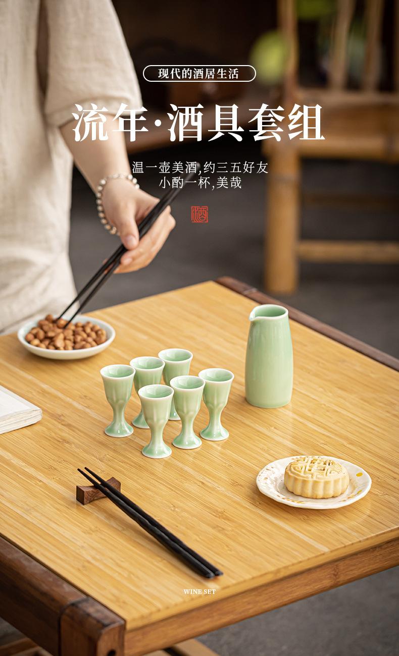 Juego de vino de celadón antiguo, regalo para el hogar, caja de regalo, dispensador de licor, vaso de licor de cerámica vintage, una taza