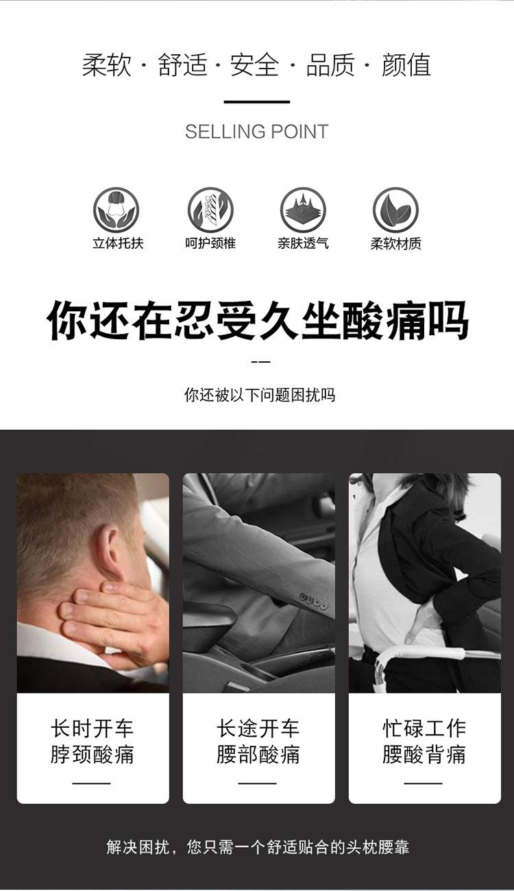 Soporte Lumbar para Reposacabezas de Coche Cojín de Asiento de Espuma Viscoelástica Almohada para el Cuello de Cuatro Estaciones Almohada Cojín para Coche Universal para Todas las Estaciones