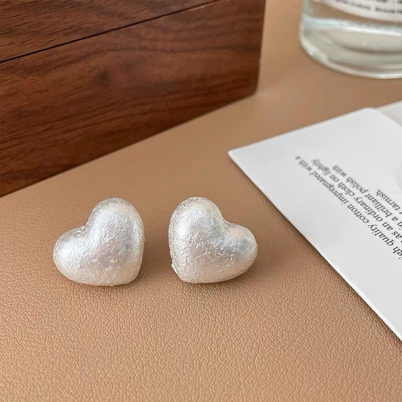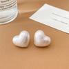 Pendientes Simples Blancos de Amor Perla de Algodón Pendientes Dulces Delicados de Alta Gama Pendientes Retro Franceses en Forma de Corazón para Mujer