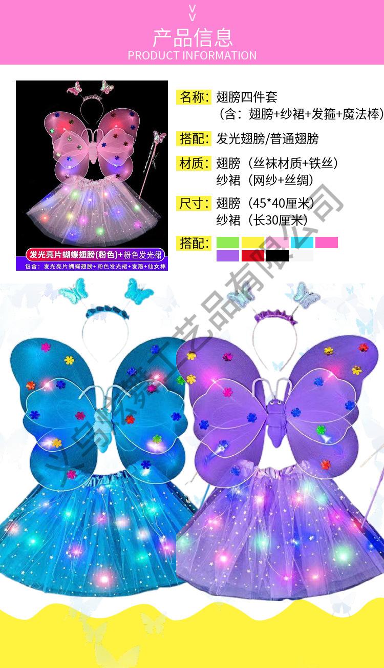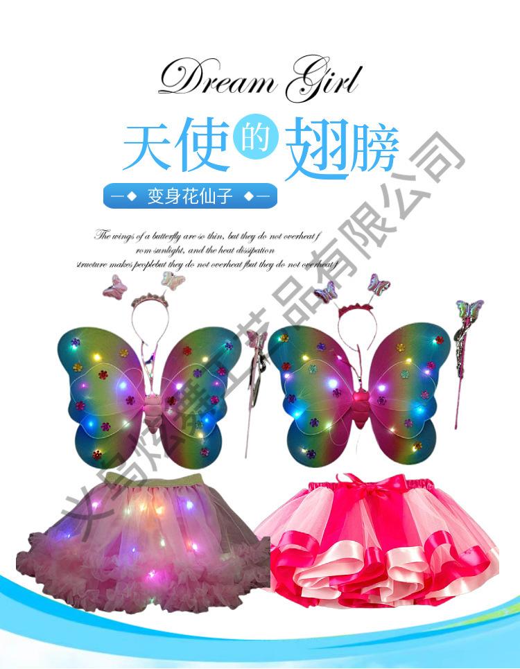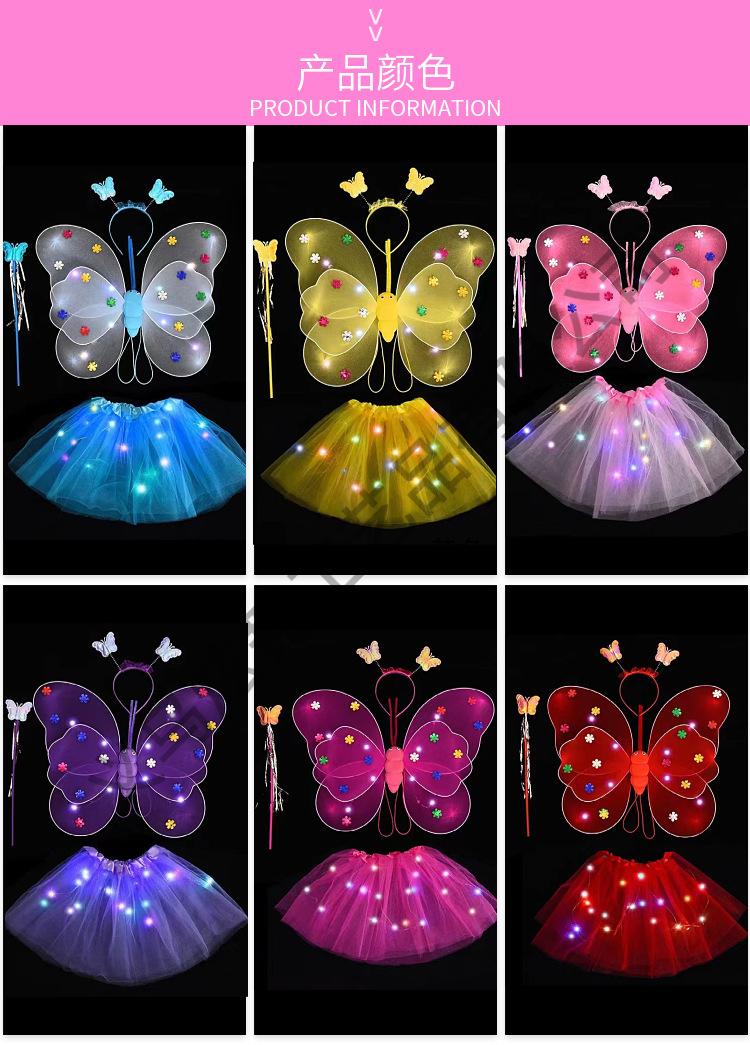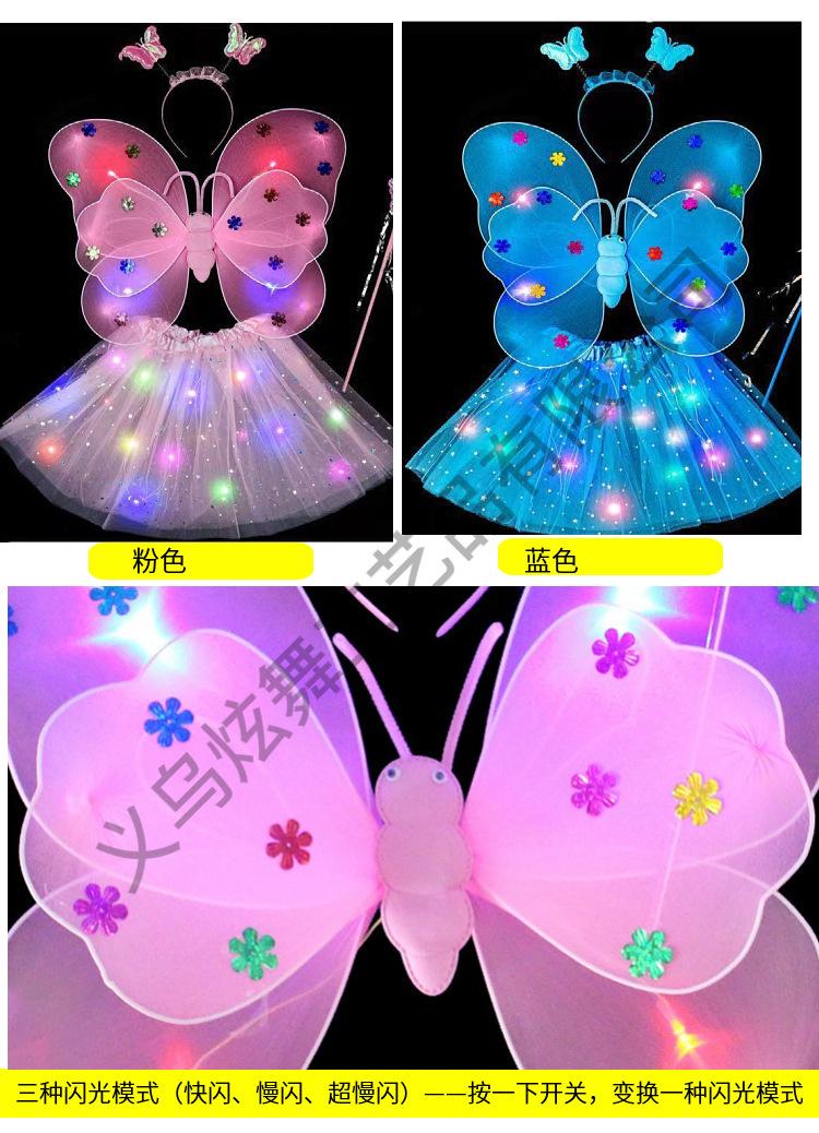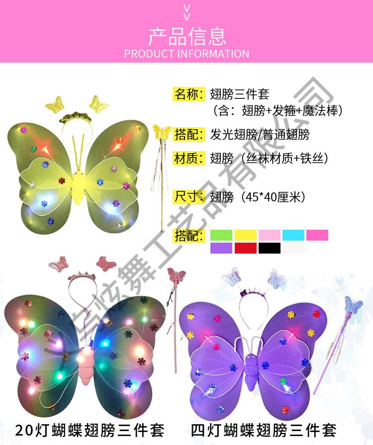 Alas de mariposa luminosas, adornos para la espalda de niña pequeña, juguetes flash para niños, maravillosa varita mágica de hadas, hada de las flores, conjunto de tres piezas