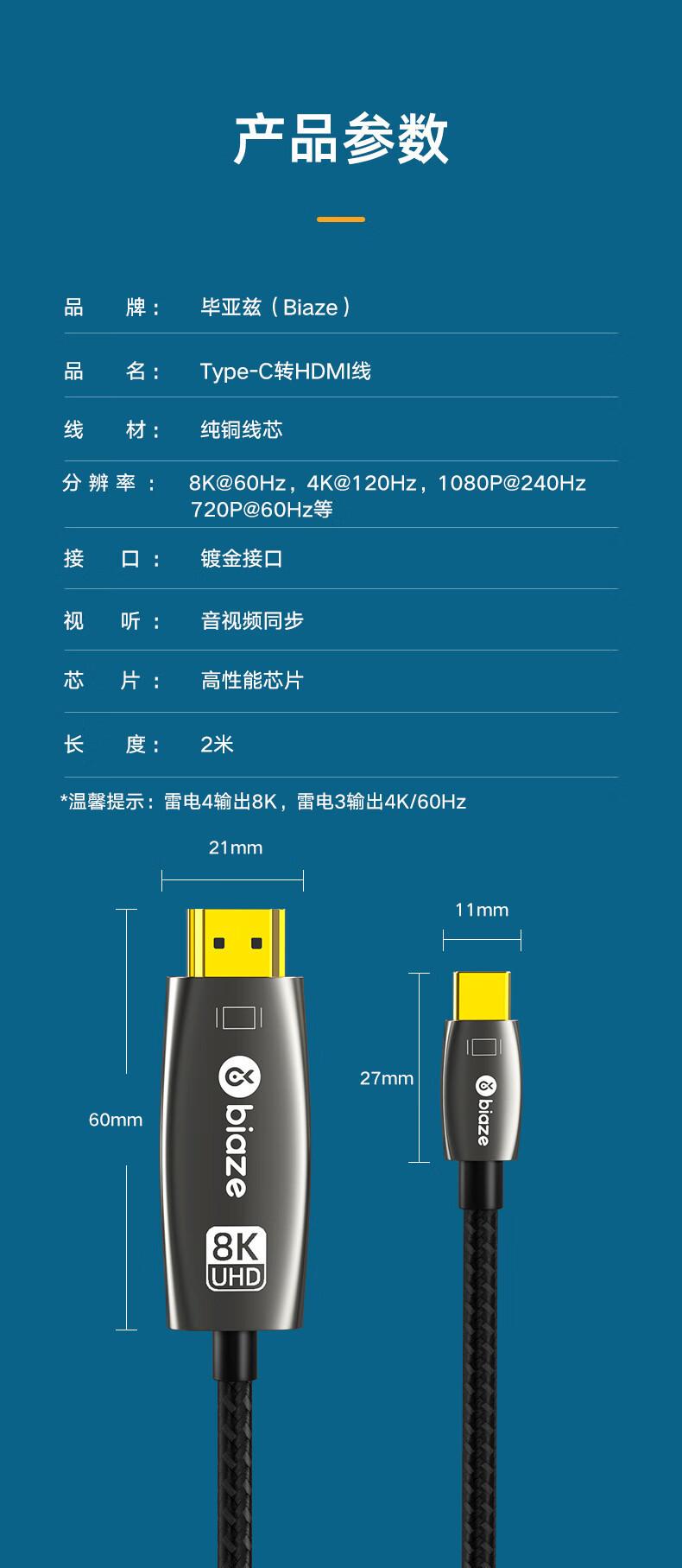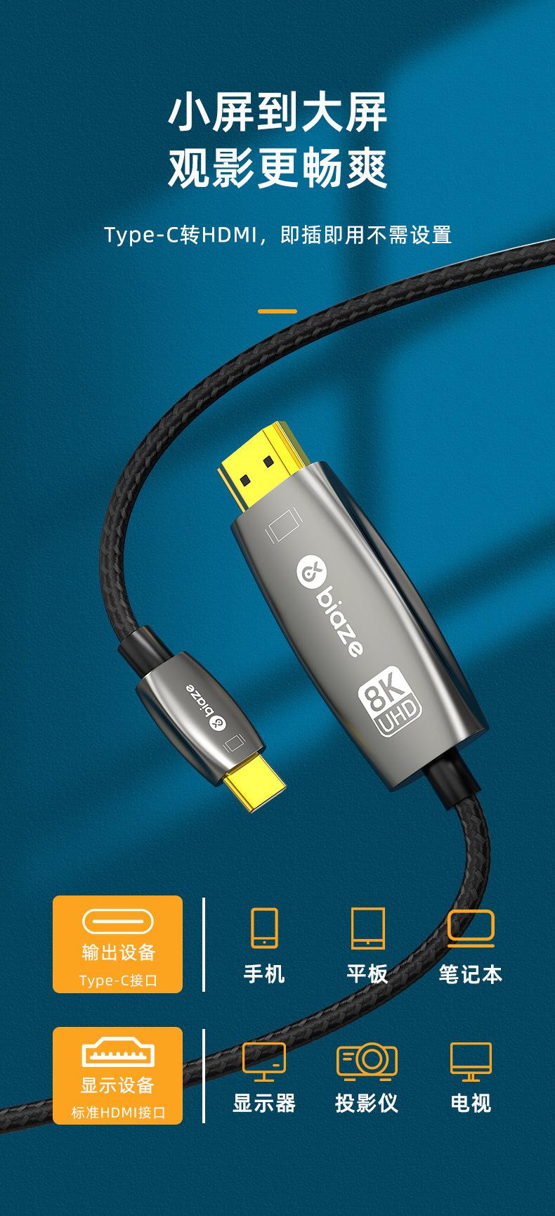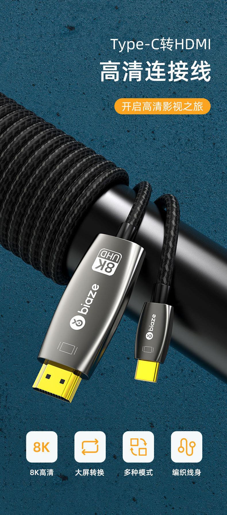 Línea de adaptadores Biaz Tipo-C a HDMI2.1 Convertidor USB-C a pantalla de proyección 8K60HZ Lightning 4