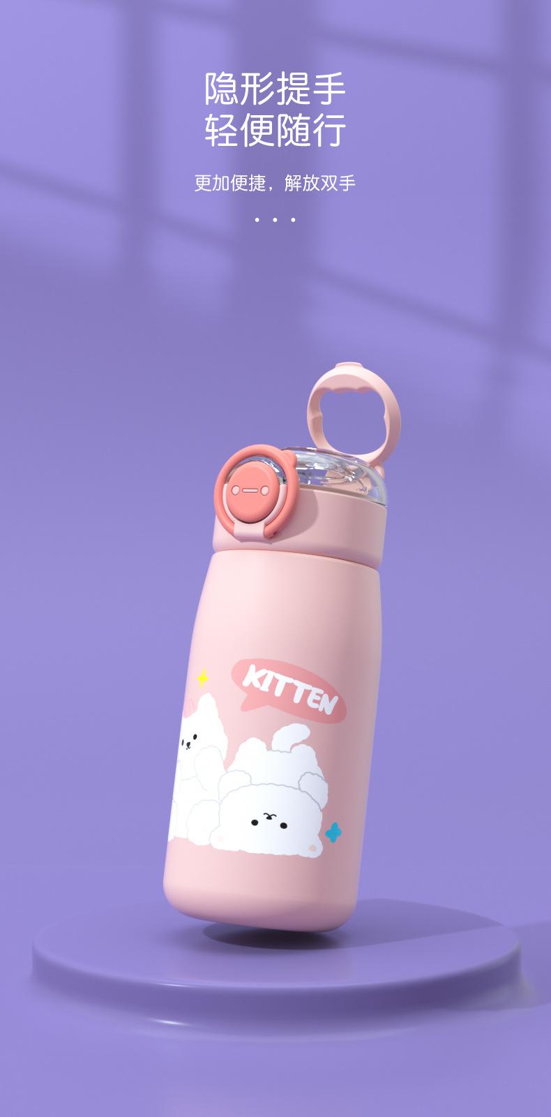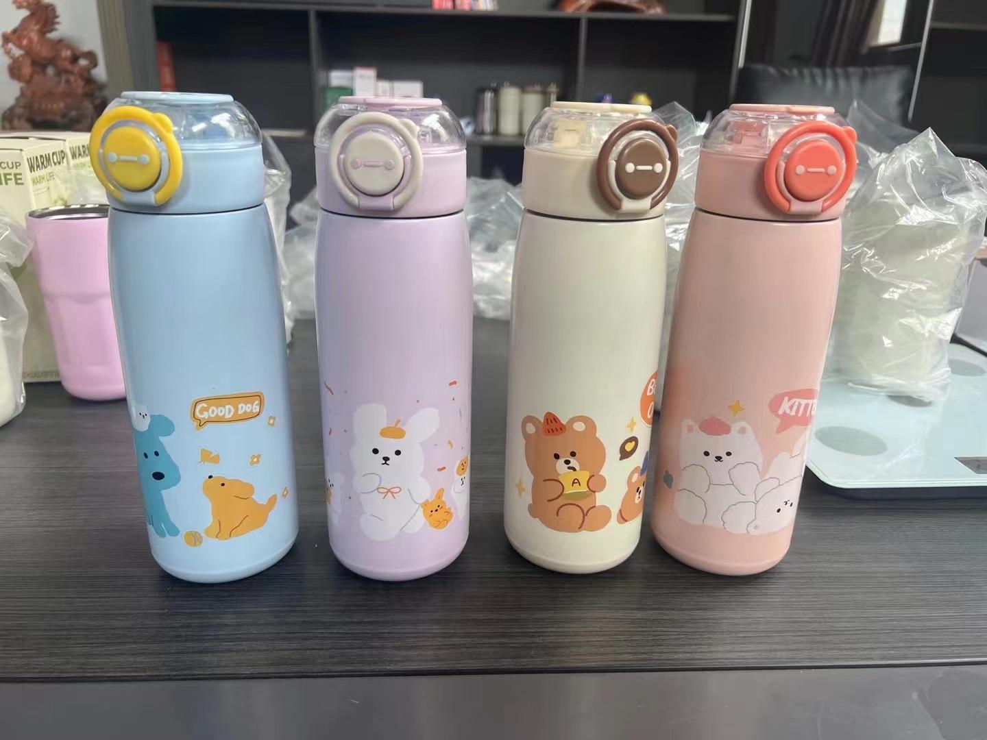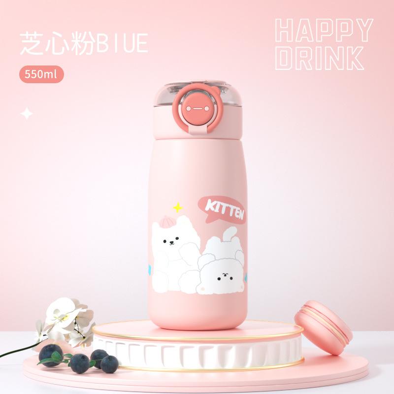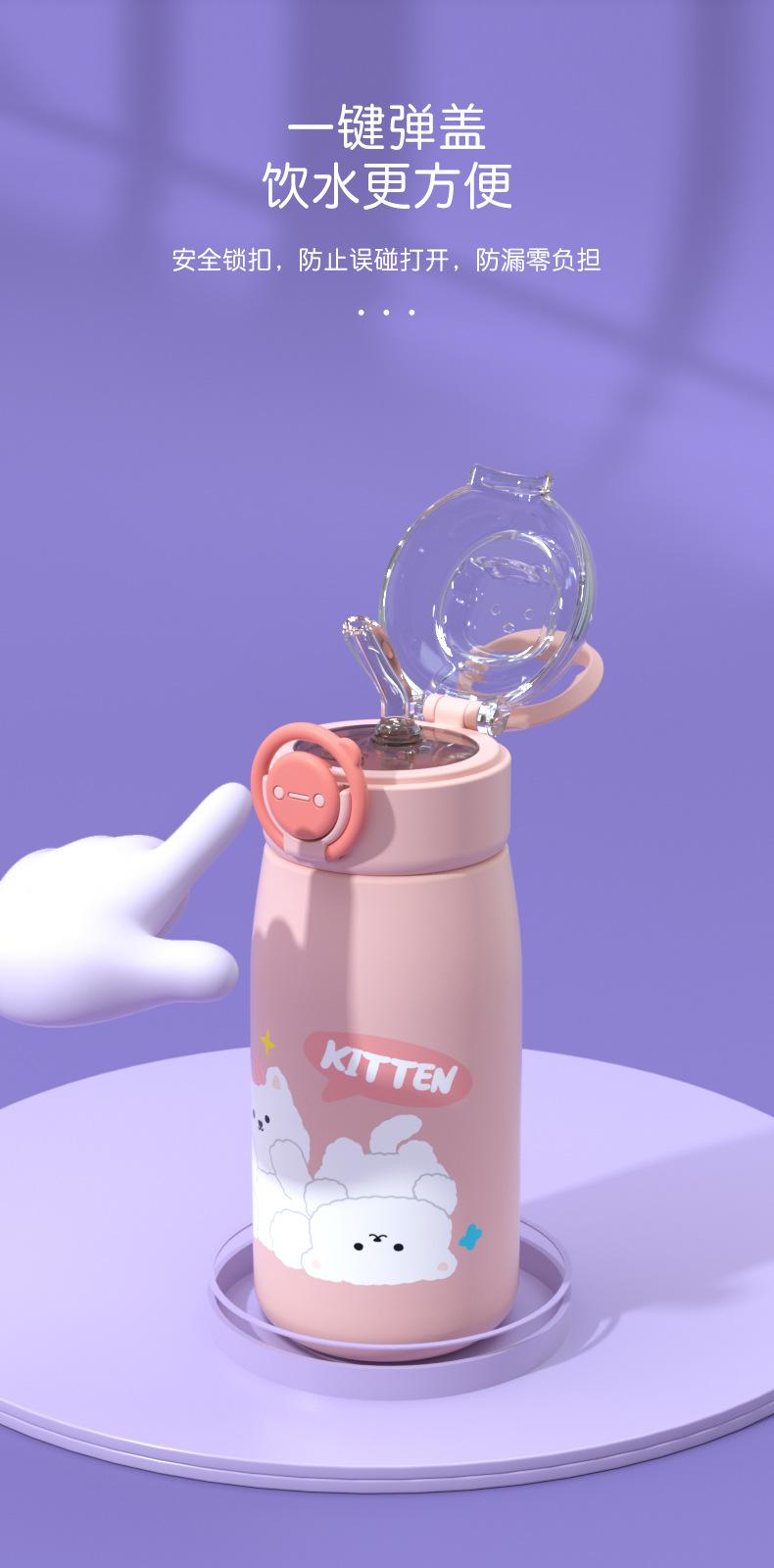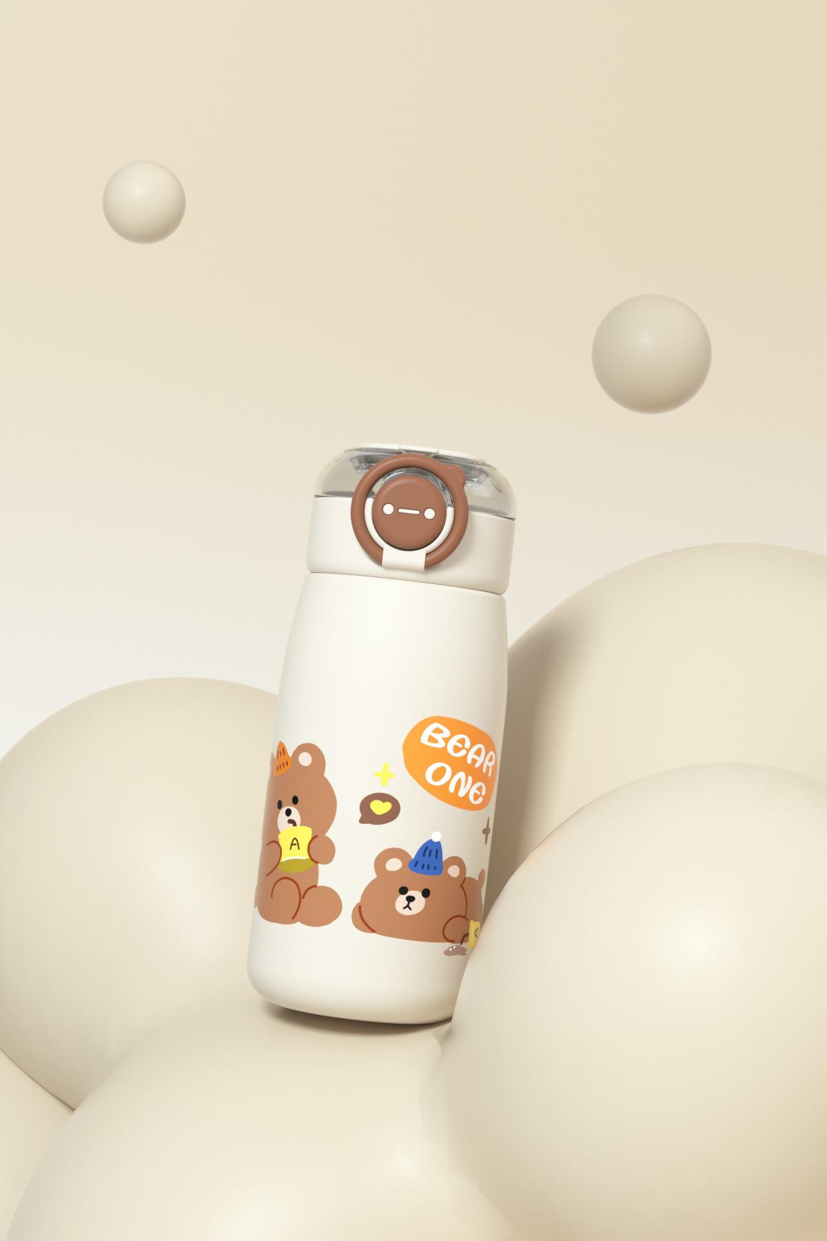 Nuevo Producto Vaso Termo de Oso 316, Vaso de Agua Lindo y Simple de Acero Inoxidable con Popote, Portátil para Estudiantes y Niñas