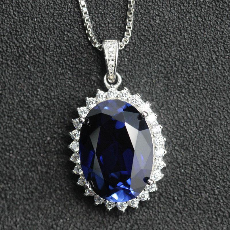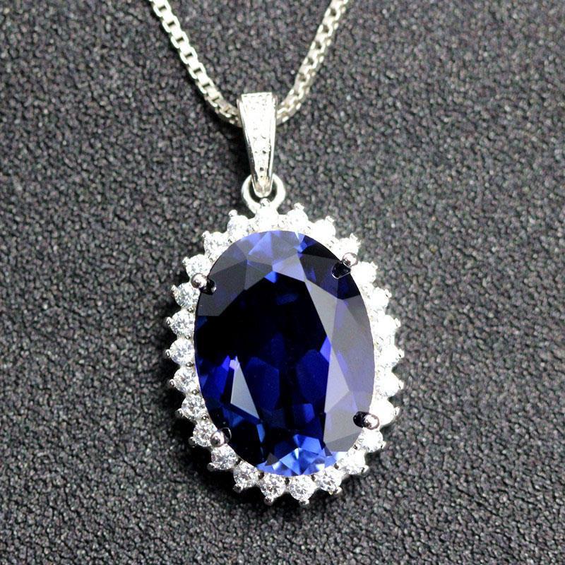 S Princesa de Plata Oval Tanzanita Azul Collar Colgante Colgante para Niños Clavícula Lujo Plata Combinable No se Desvanece