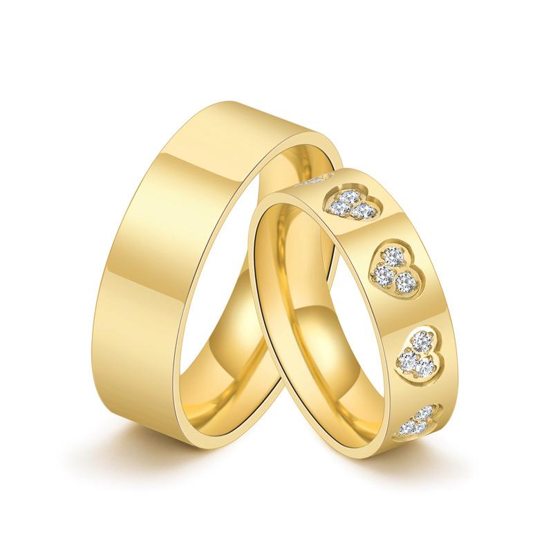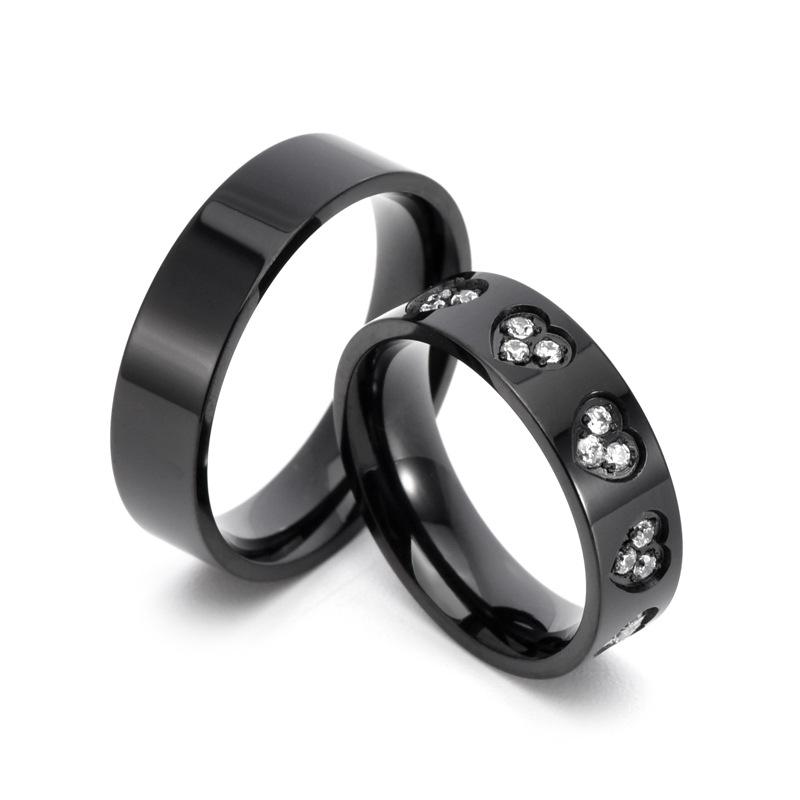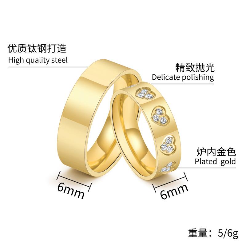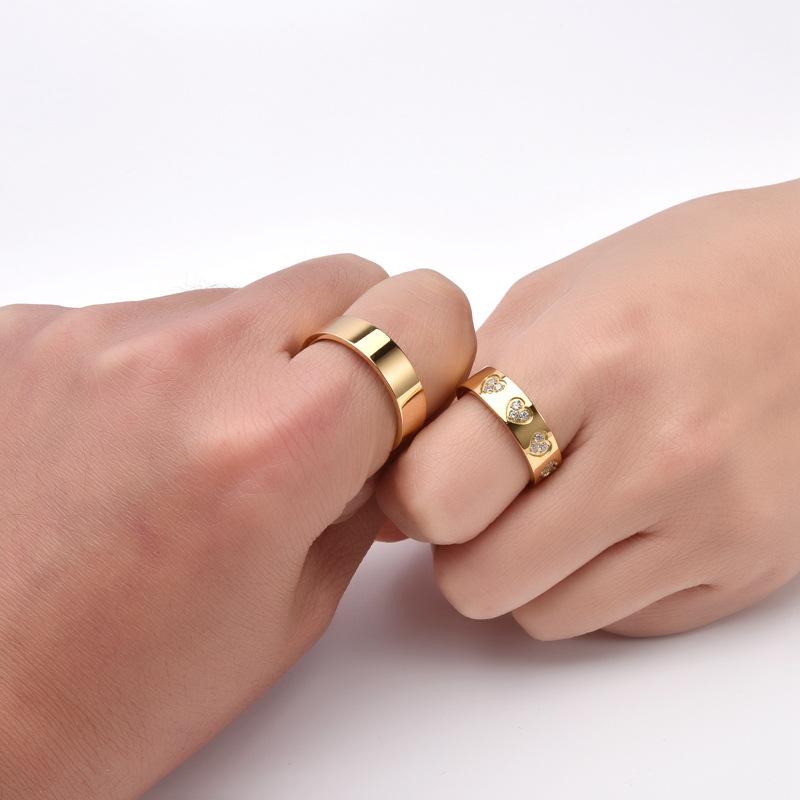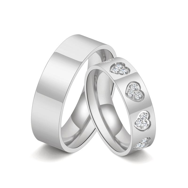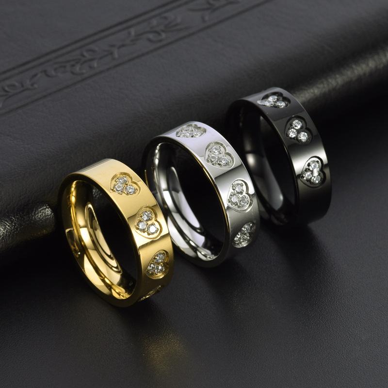 European and american jewelry new glossy casualcouple plain ring heart diamond titanium steel ring men's and w...