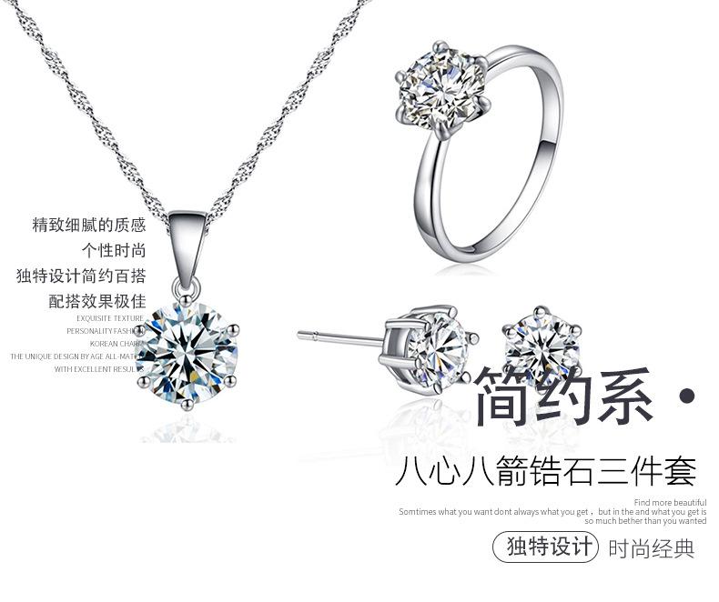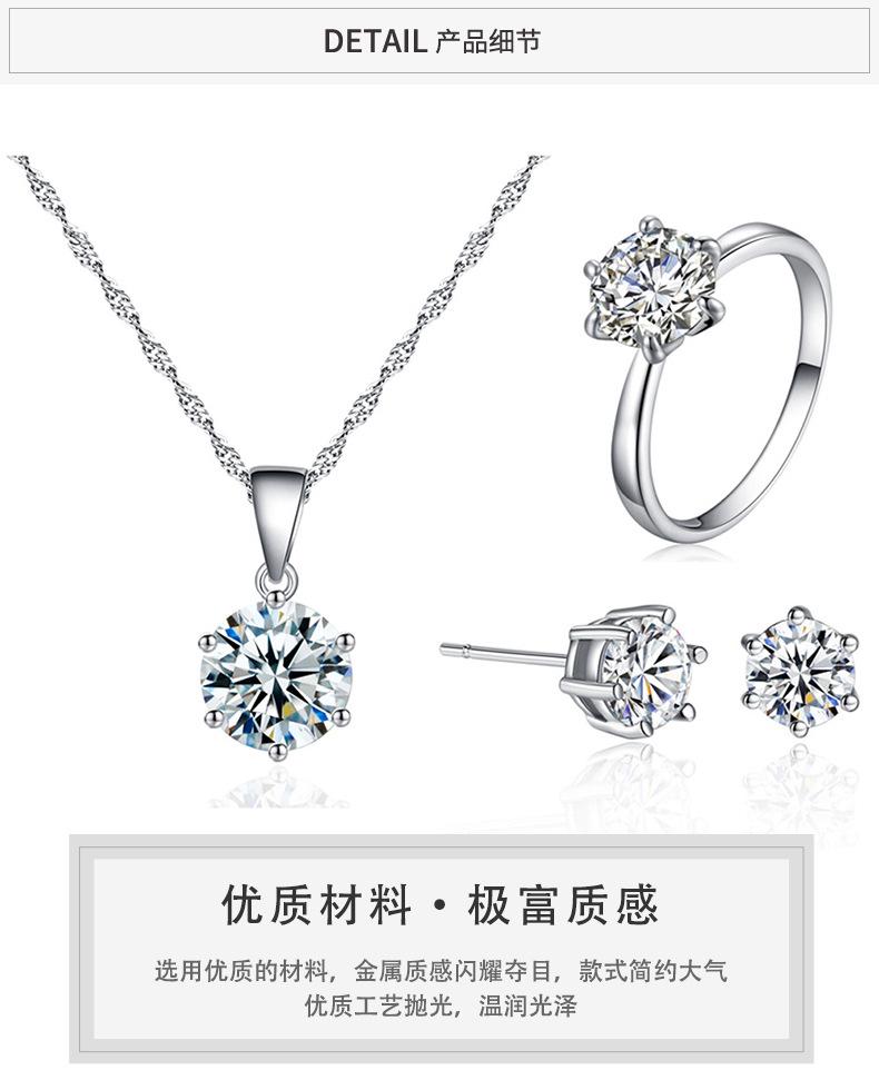 Collar, pendientes y anillo de circonitas simples de moda transfronteriza, joyería para novias y bodas, joyería pequeña y fresca para mujeres.