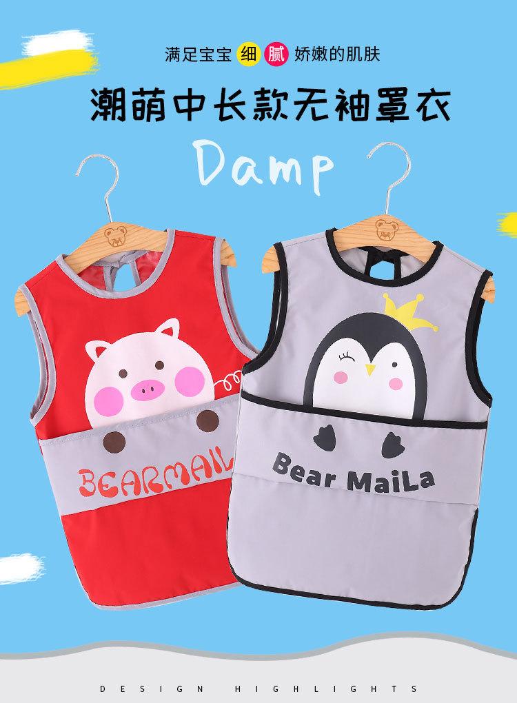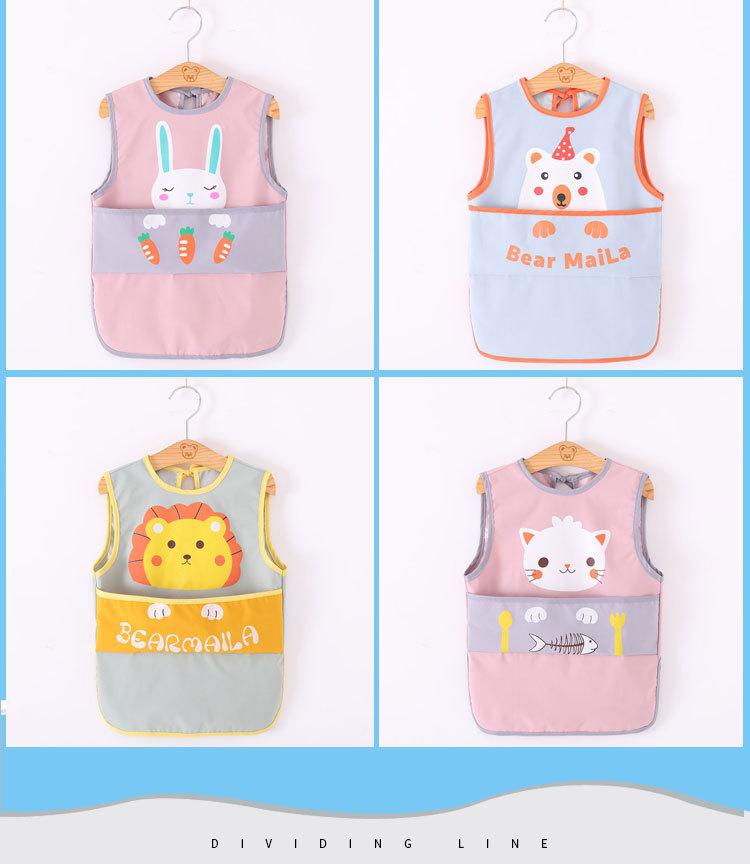 Mono de verano sin mangas para bebé, delantal impermeable de cuerpo entero de longitud media para niños, babero para bebé con cubo para comer para niños