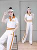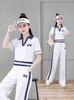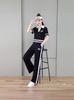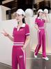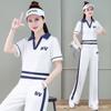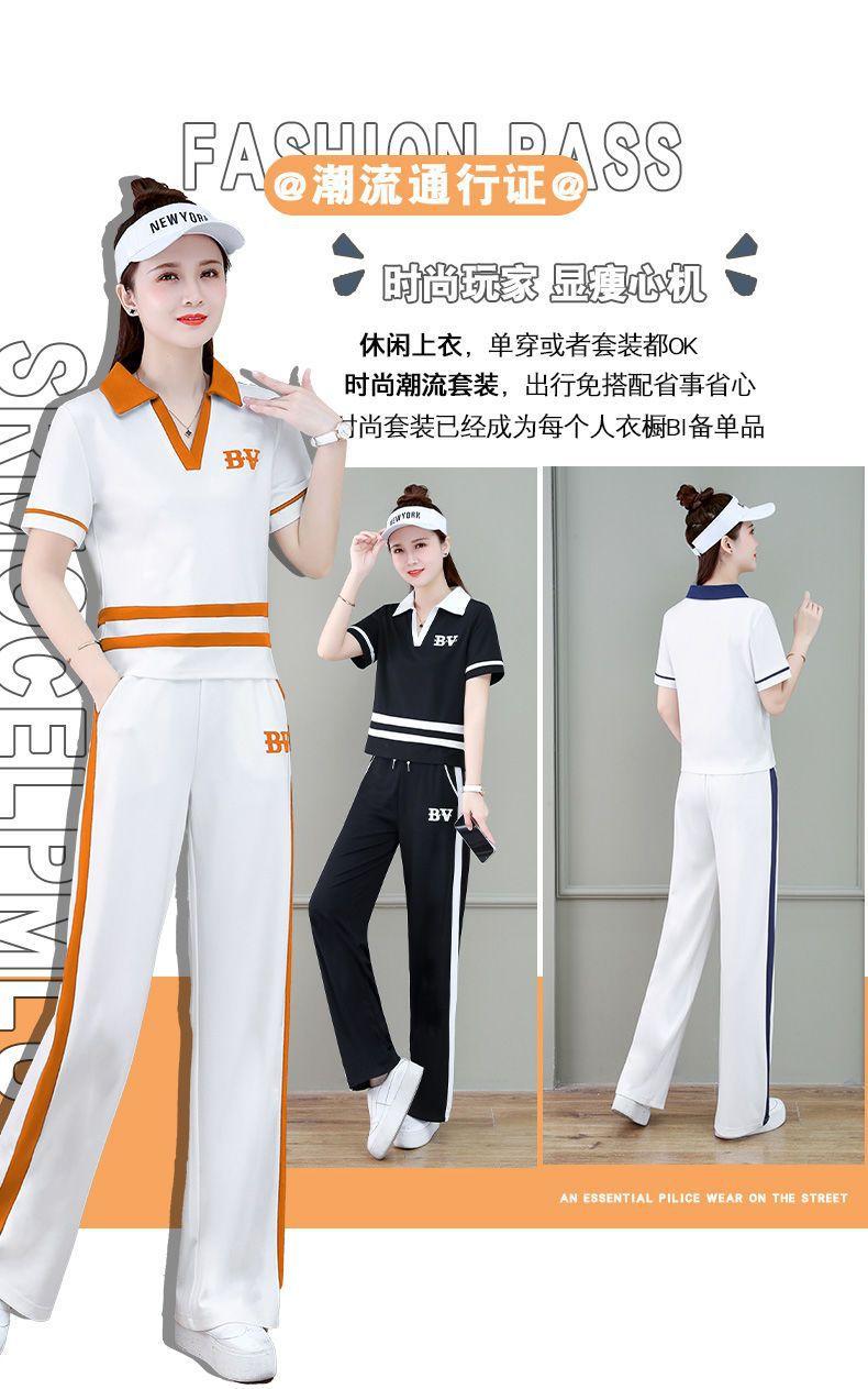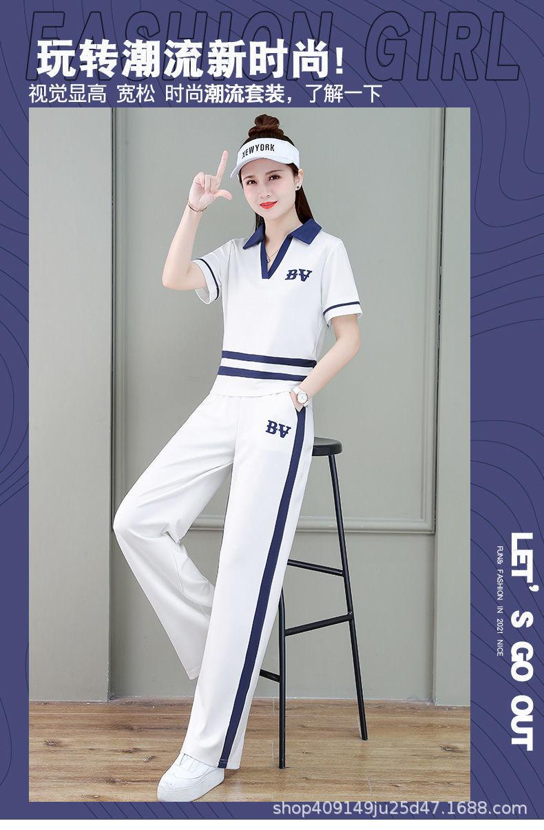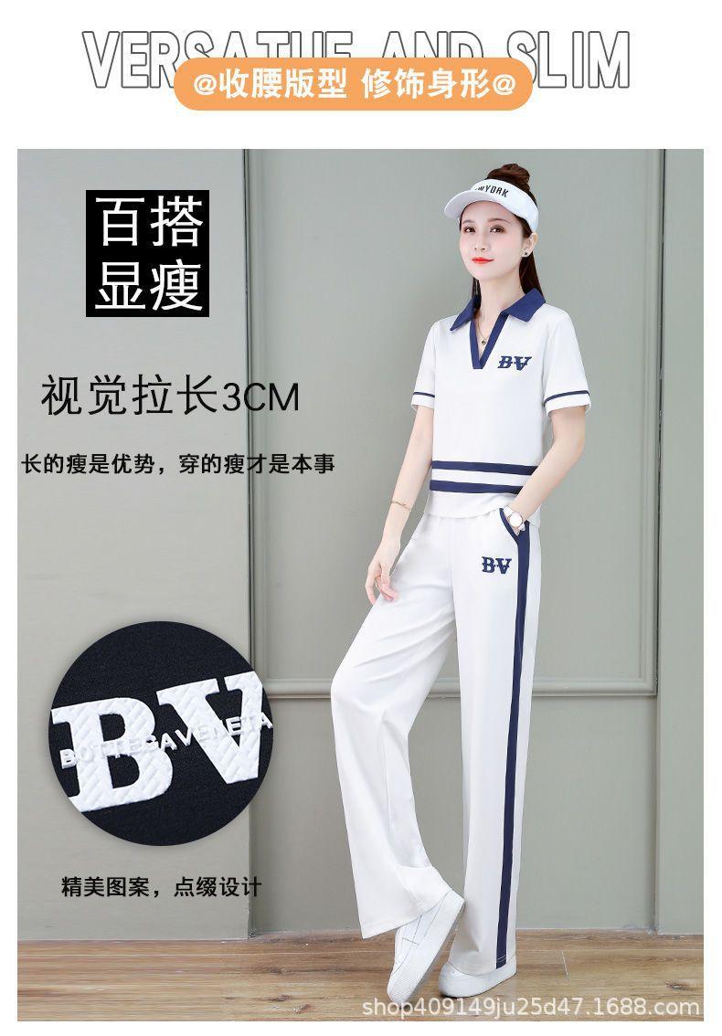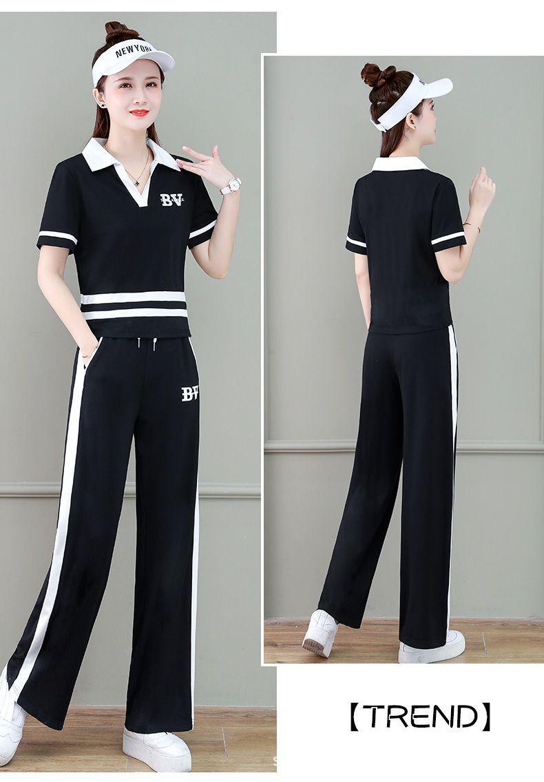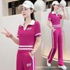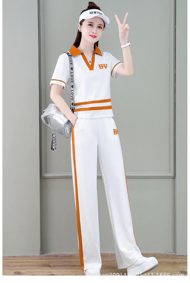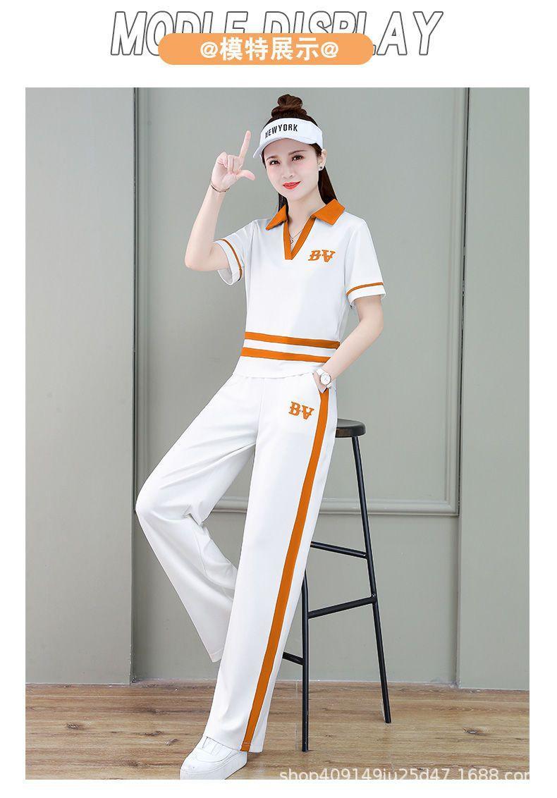 Traje deportivo informal de moda de verano 2024, camiseta de manga corta con solapa para mujer, pantalones anchos de estilo occidental antiedad, conjunto de dos piezas