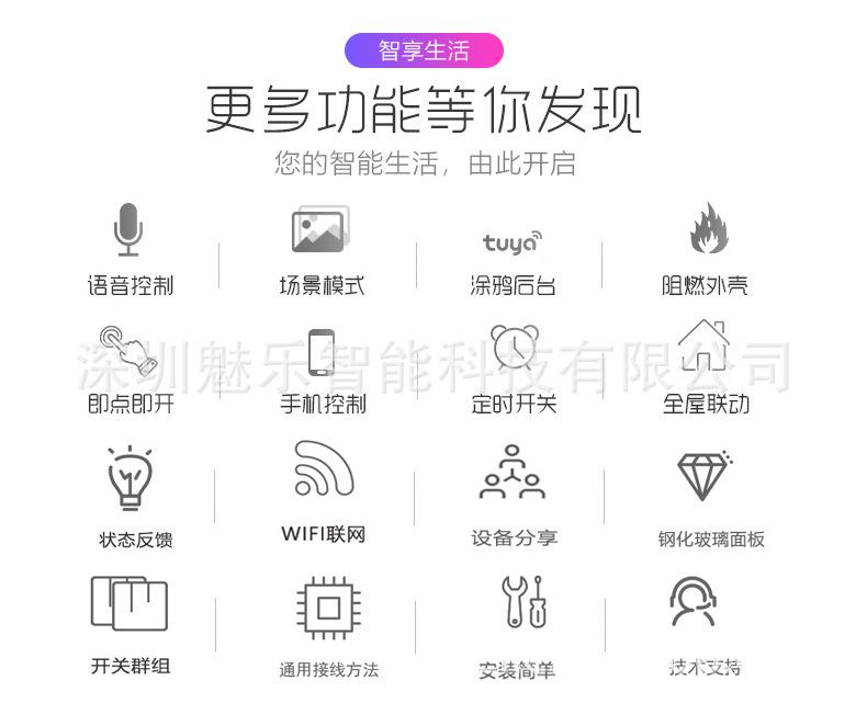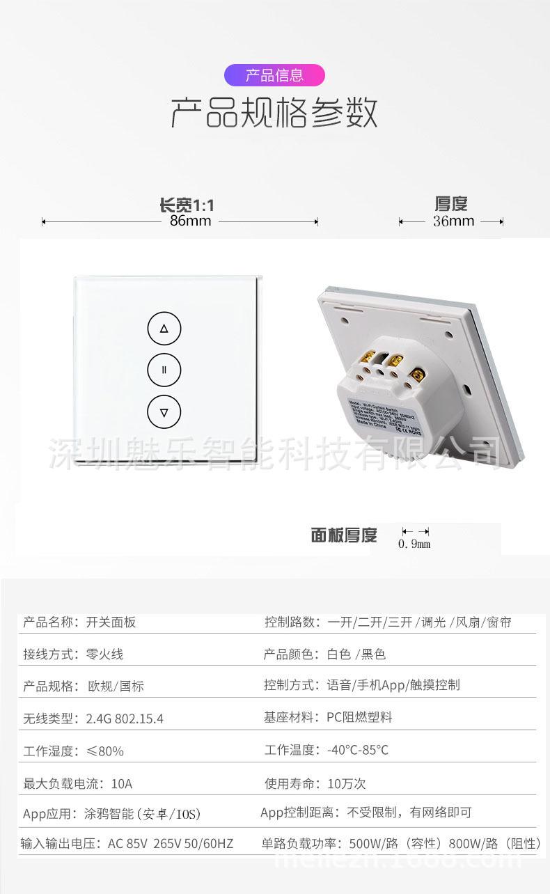 Características: Vida inteligente o aplicación inteligente Tuya, interruptor remoto, escena, sincronización, interruptor de luz de fondo, interruptor de avance lento