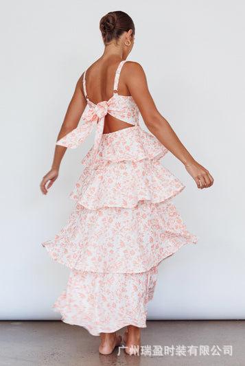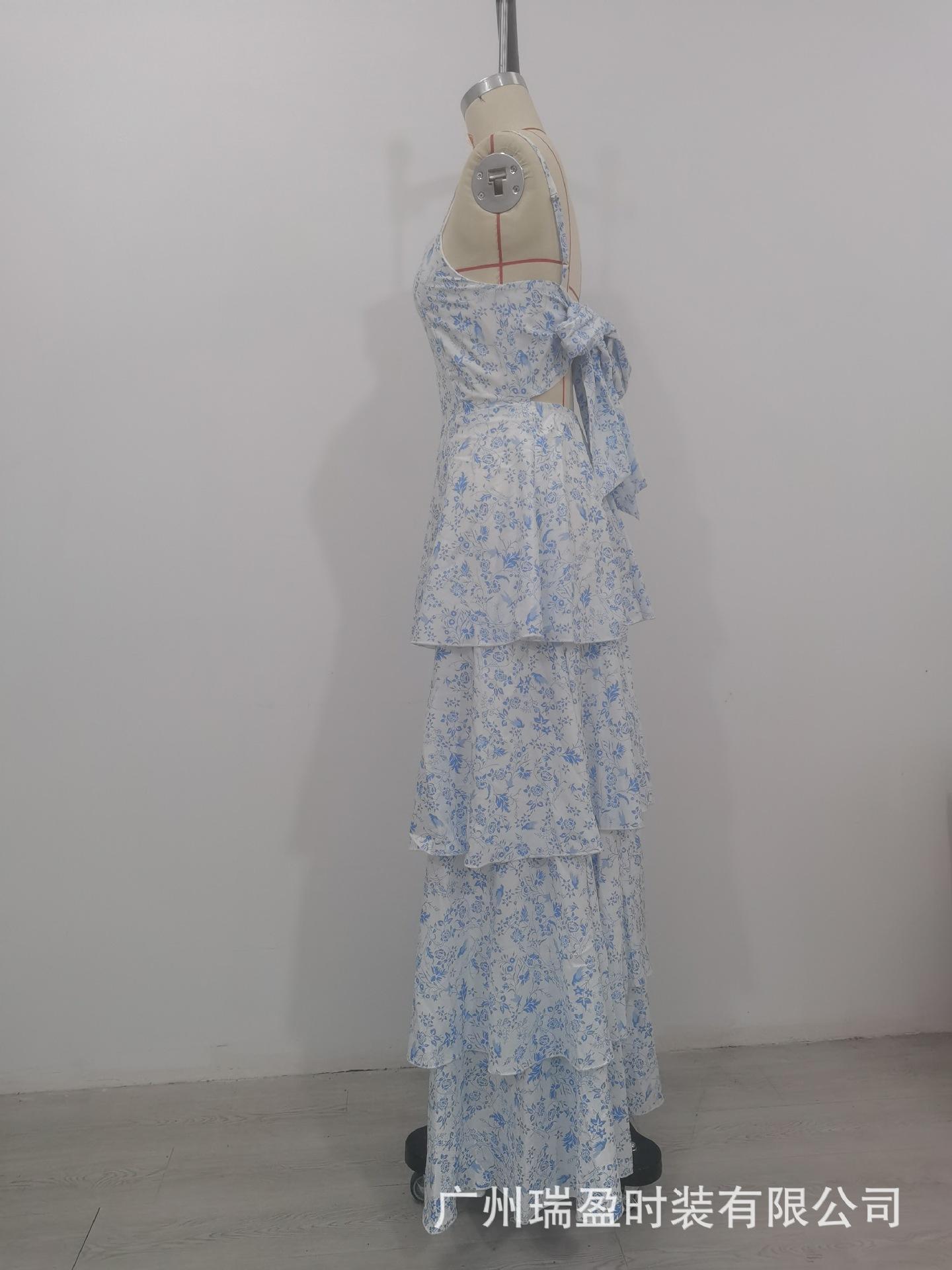 Compra Europa y Estados Unidos 2024 nuevo vestido de primavera y verano que cae al suelo vestido estampado con temperamento para fiesta de vacaciones (2 colores) al por mayor en Joom.pro
