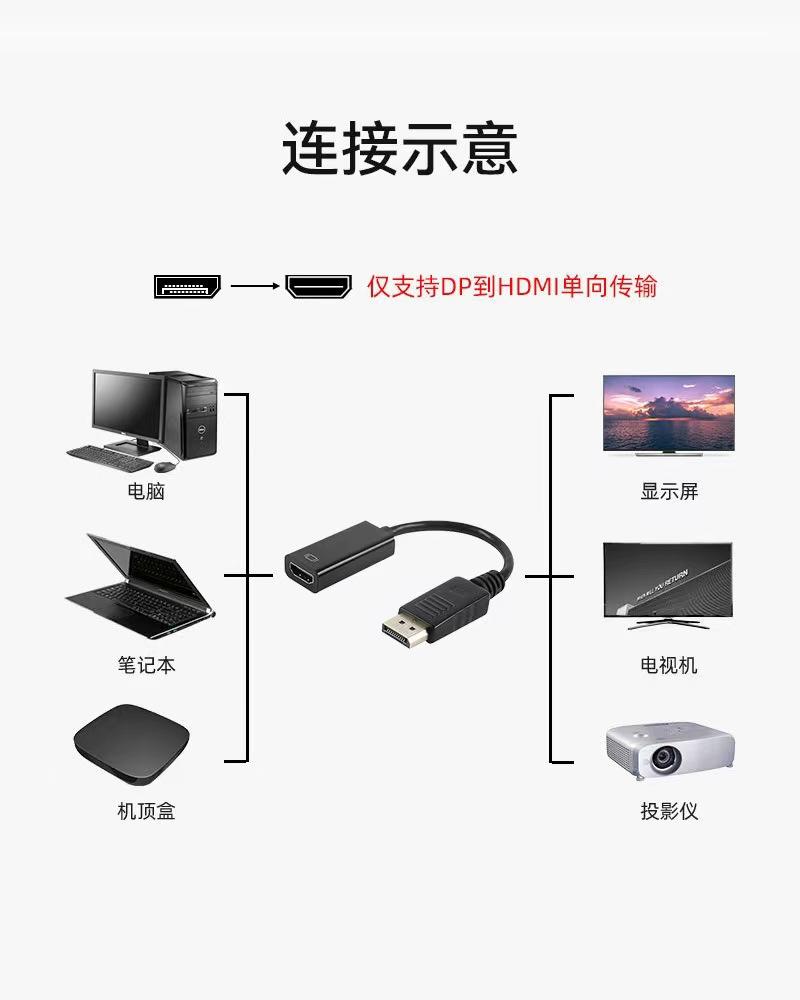 Adaptador convertidor de DP a HDMI HD 1080p de gran venta transfronteriza