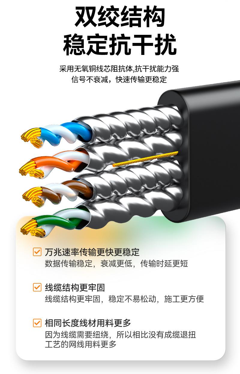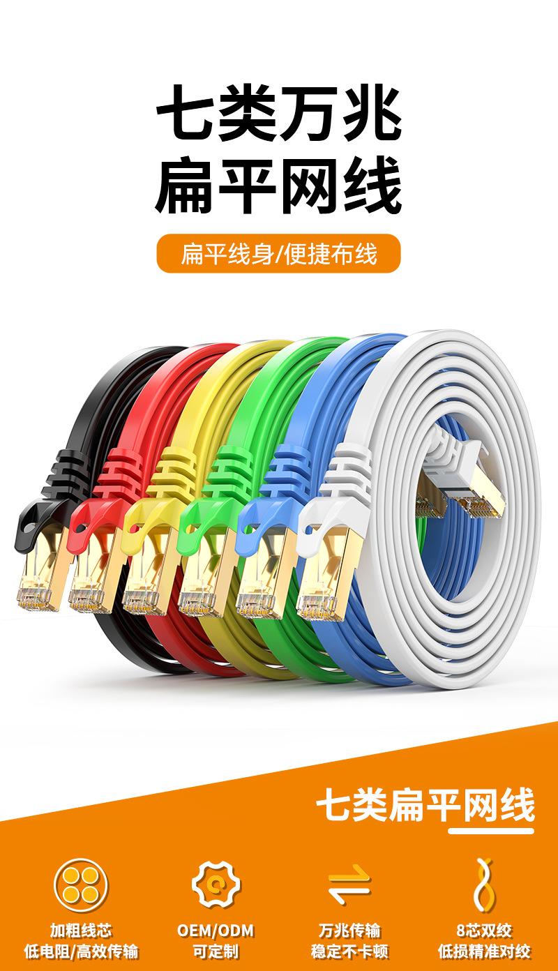 Cable de Red Plano Categoría 7 de Venta Caliente Transfronteriza Cable de Red de Ingeniería Doblemente Apantallado de Cobre Libre de Oxígeno Categoría 7 10g Cable de Red para Computadora
