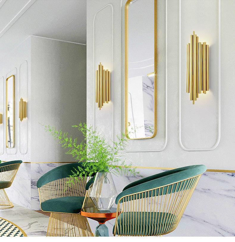 Lámpara de pared LED dorada creativa posmoderna, lámpara de pared europea sencilla para sala de estar, dormitorio, lámpara de pared para pasillo y balcón