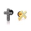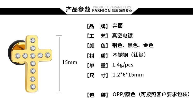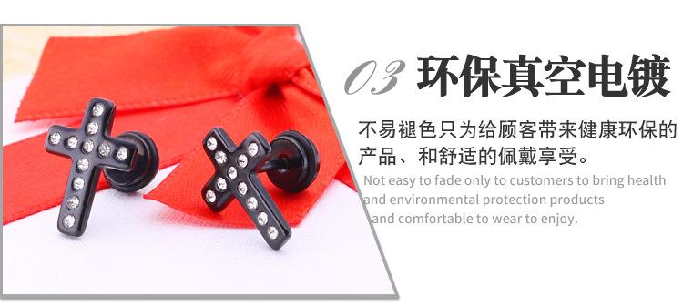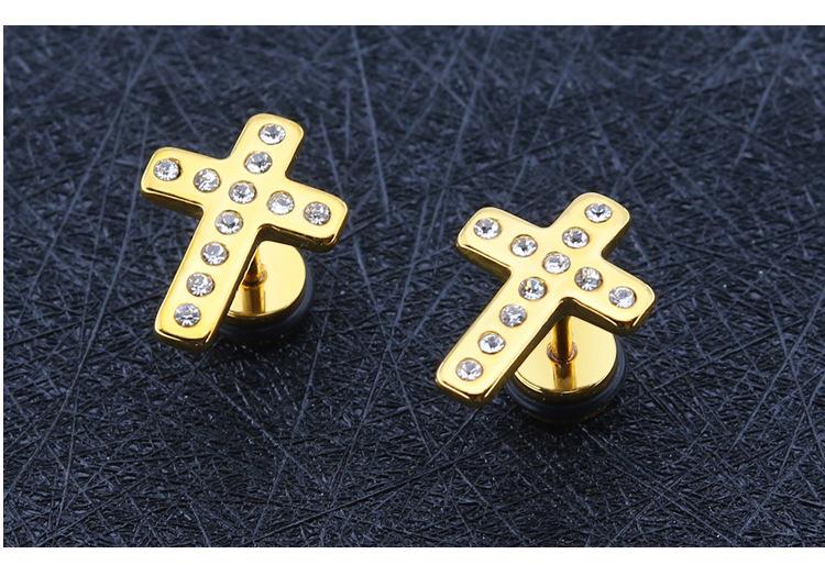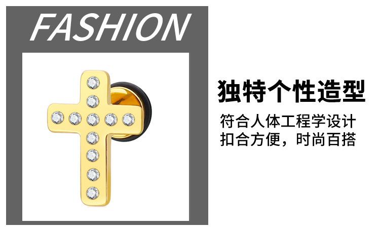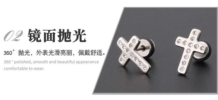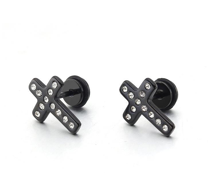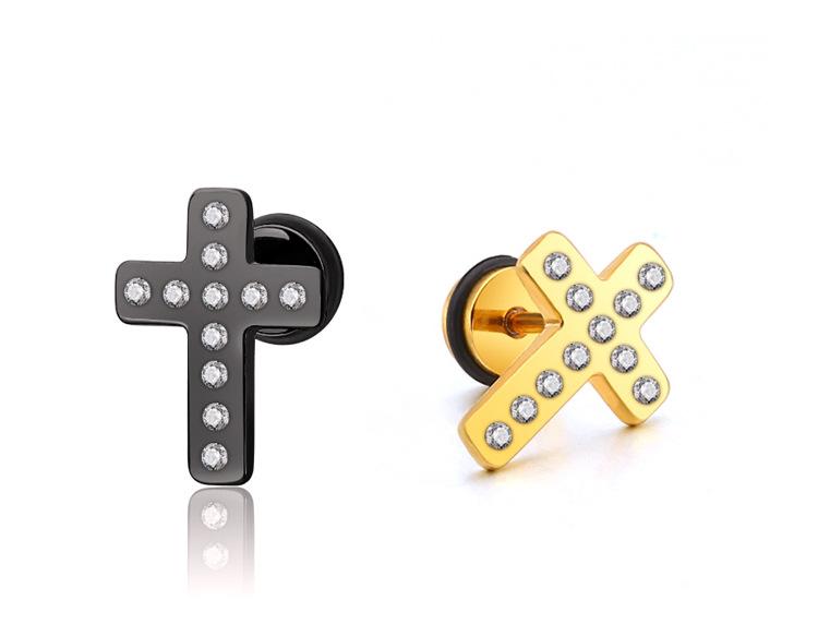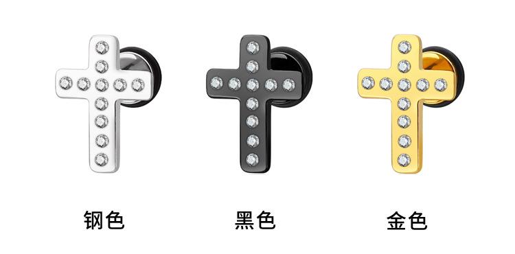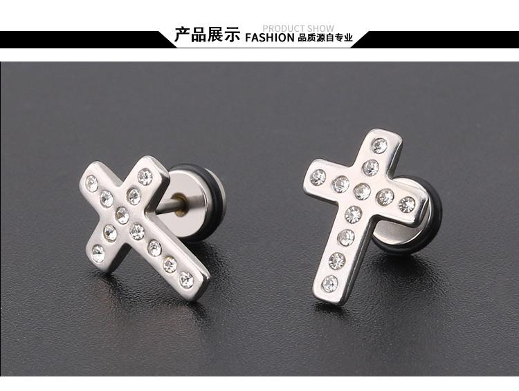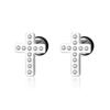 Moda simple japonesa y coreana hip-hop punk acero de titanio circonita arete de cruz de diamante de una sola fila para mujer fabricantes venta al por mayor transfronteriza