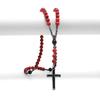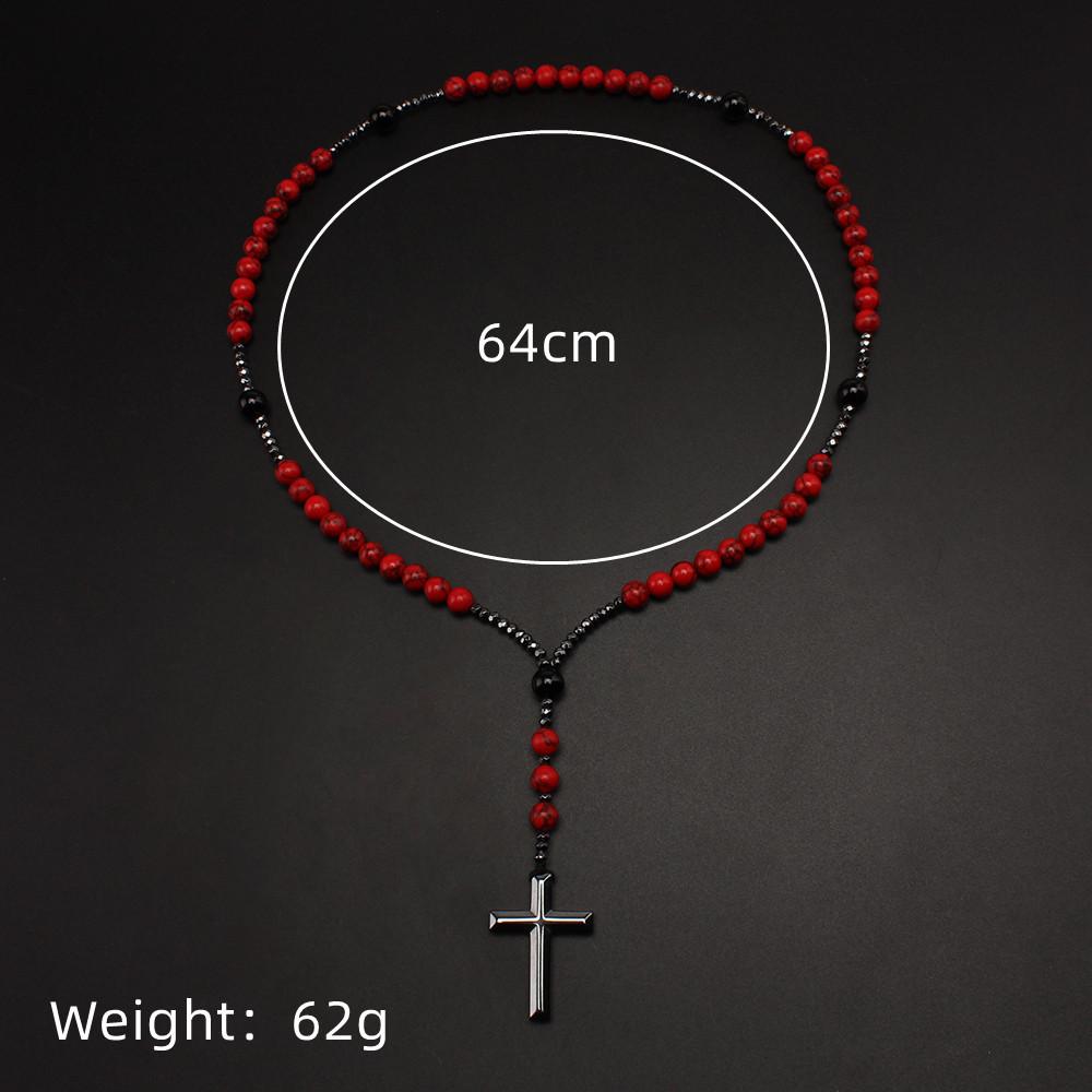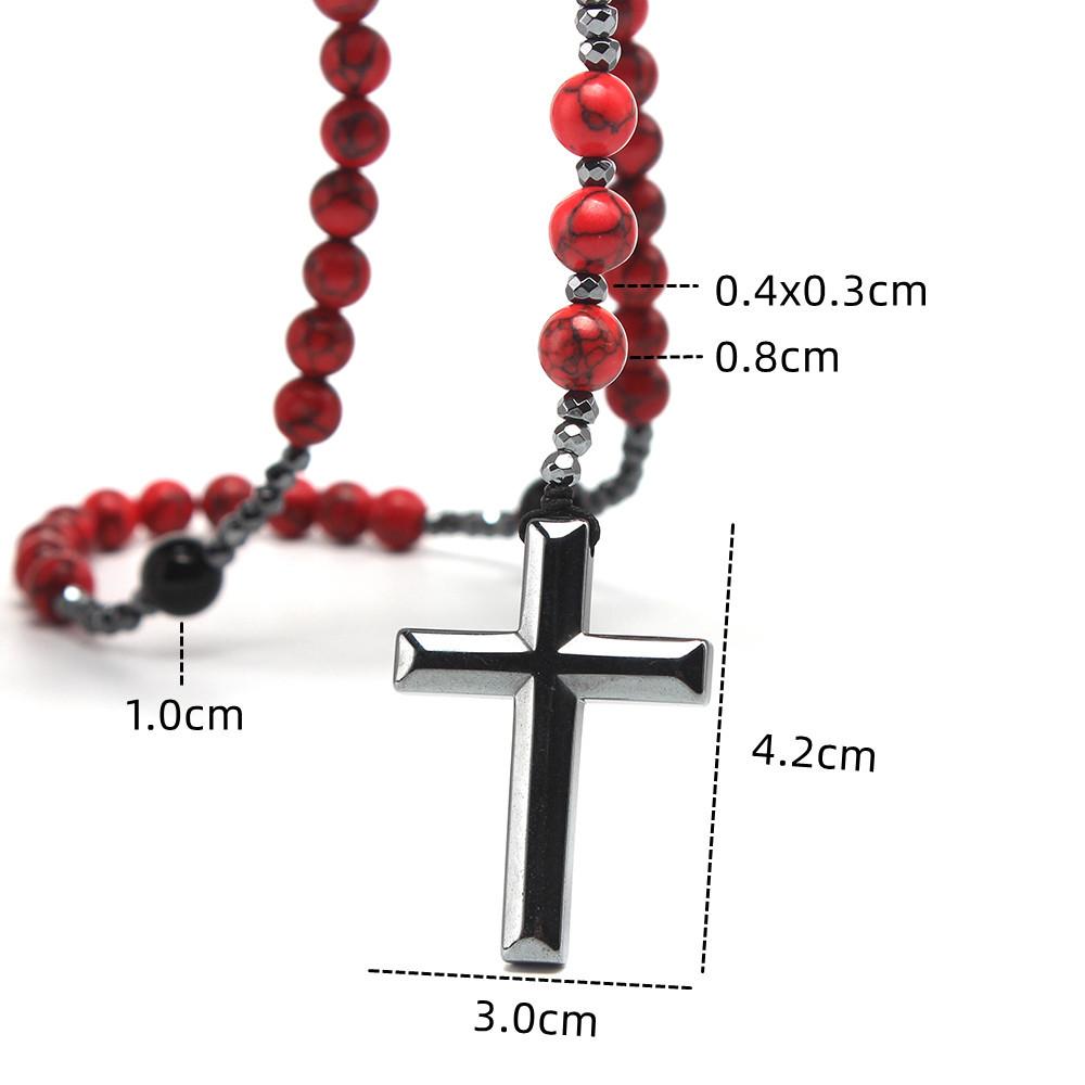Collar de cadena larga para hombre con cuentas de rosario cruzadas de piedra natural amazónica de 8 mm, turquesa roja, ágata negra y cálculos biliares negros.