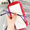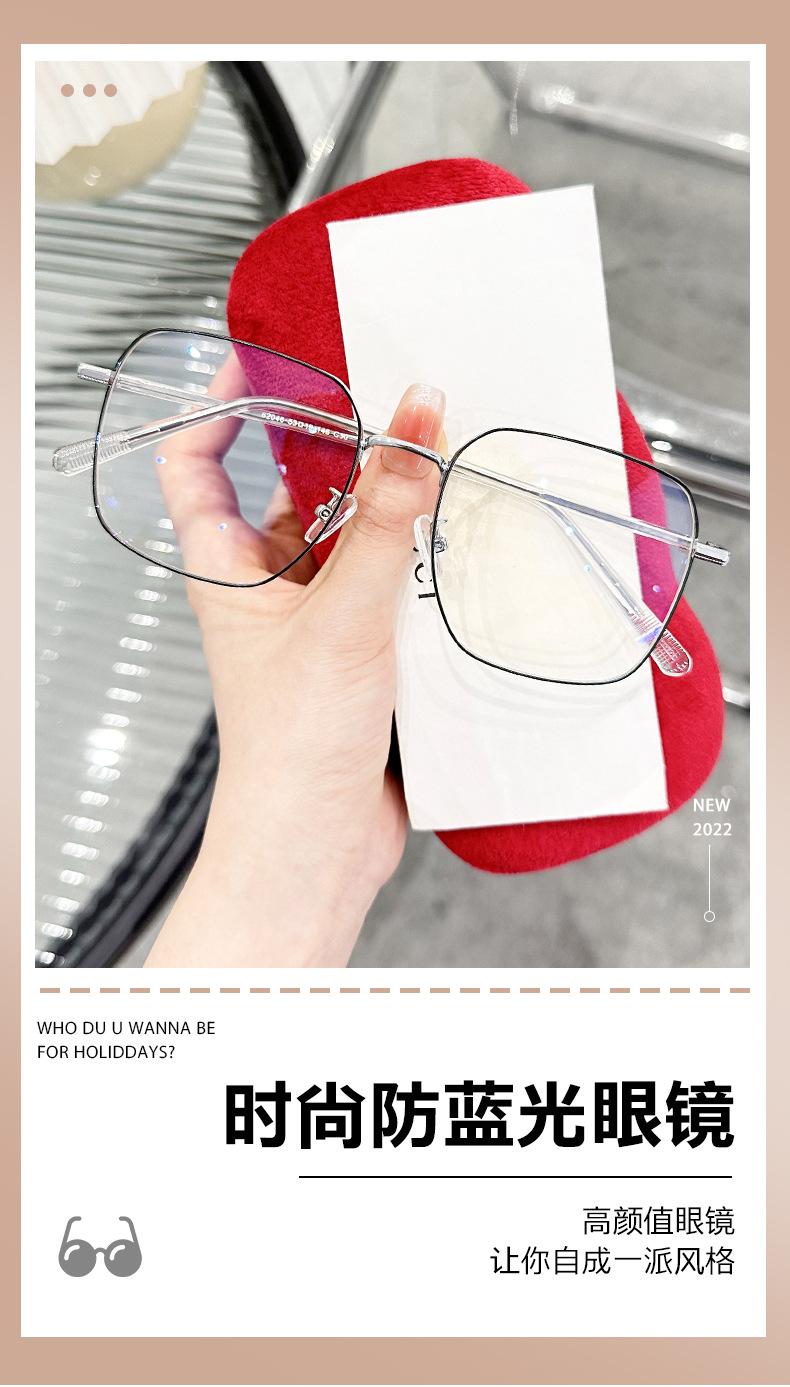 El nuevo puede equiparse con gafas miopes anti-luz azul sin montura de maquillaje, montura grande, espejo plano, cara de rojo en línea para hombres y mujeres