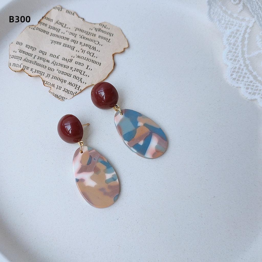 Los patrones en el material de resina son aleatorios y no fijos. Este es un juego de aretes con una textura completa.