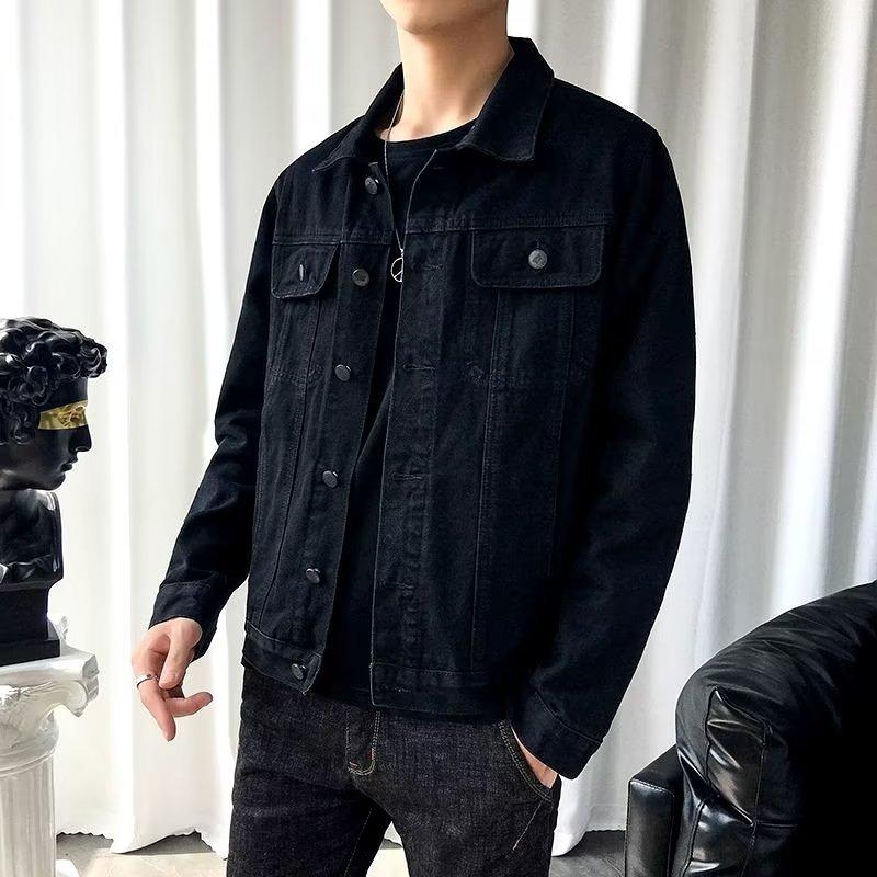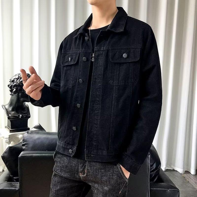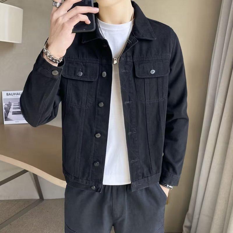 Chaqueta vaquera de otoño para hombre, estilo retro, elegante, estilo coreano, informal, de color sólido, moderna.