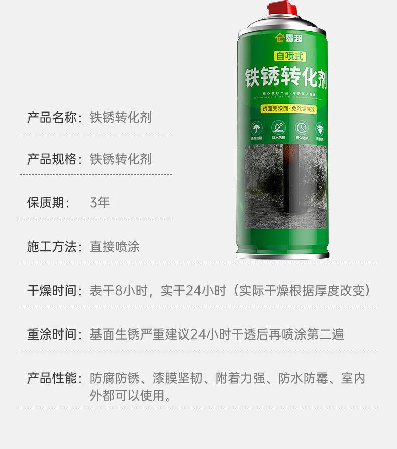 Agente Autopulverizable de Conversión de Óxido, Sin Pulido, Sin Pintura Metálica, Eliminación de Óxido, Pintura de Renovación para Teja de Acero Color, Imprimación Anticorrosiva, Fijador de Óxido