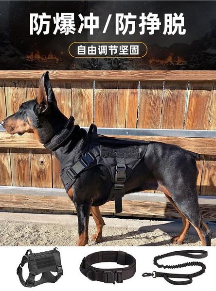 Correa táctica para perros + collar para perros, collar de nailon resistente al desgaste para exteriores, juego de cuerda de entrenamiento para mascotas K9