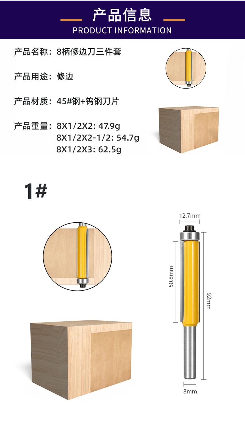 8x1/2x2, 8x1/2x2-1/2, 8x1/2x3, 8x 1/2 lengthened trimming knife three-piece set