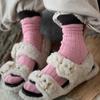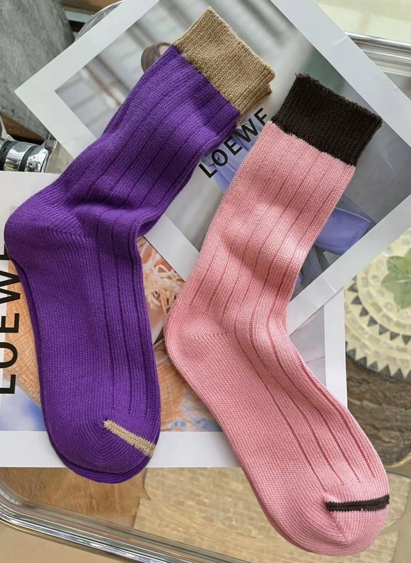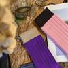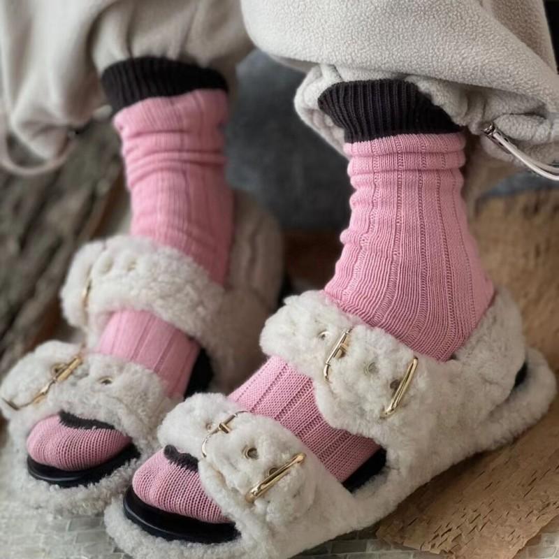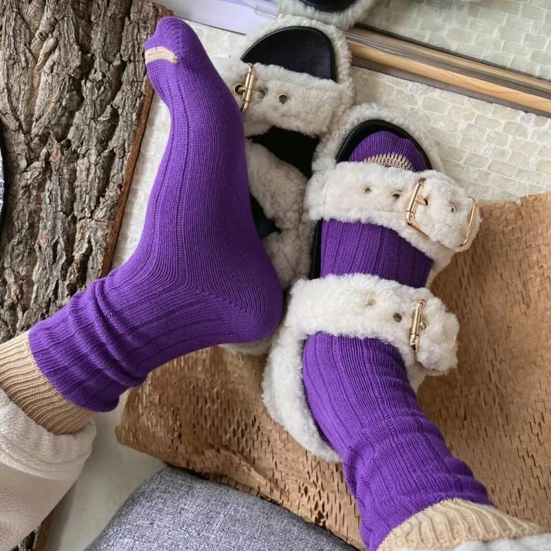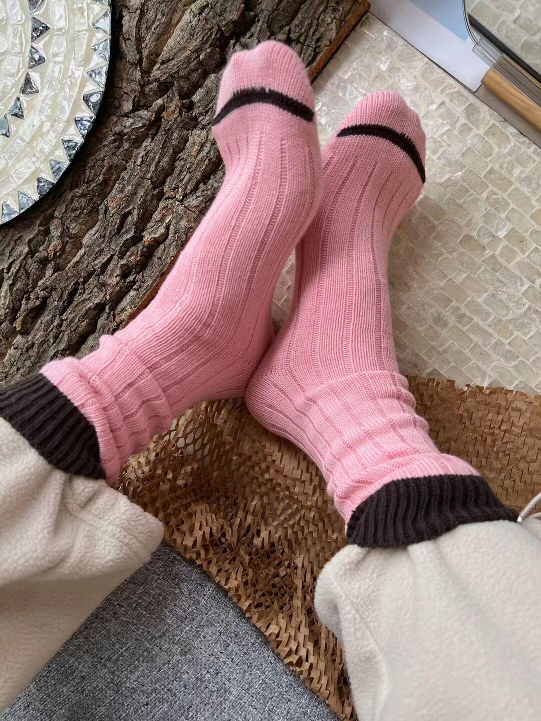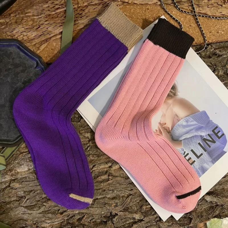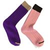 Calcetines de Estilo Europeo de Otoño e Invierno para Mujer, Calcetines de Moda de Hilo Grueso, Calcetines de Algodón Rosa y Morado, Calcetines Dulces sin Costuras de Media Caña con Bloques de Color, Casuales
