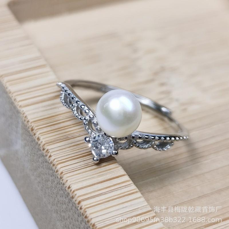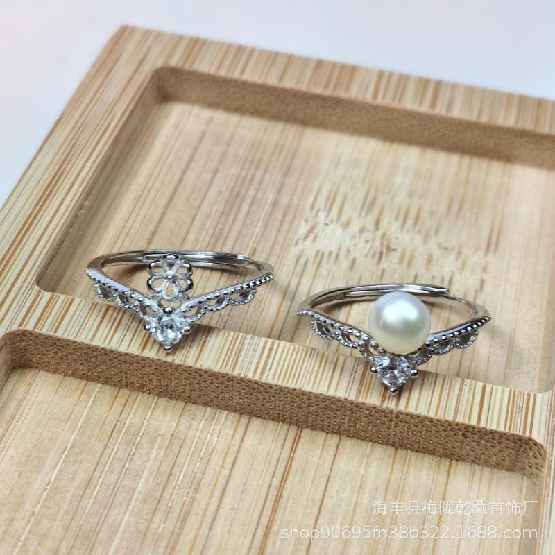 Anillo Corona de Plata Esterlina S925 Caliente por Todo Alrededor Soporte Vacío DIY Accesorios de Plata Venta al por Mayor 5055mm Soporte Vacío para Anillo de Perla