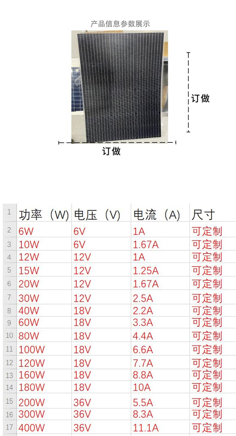 Panel solar de silicio monocristalino ETFE de 1 W y 300 W, paquete de lámina flexible solar.
