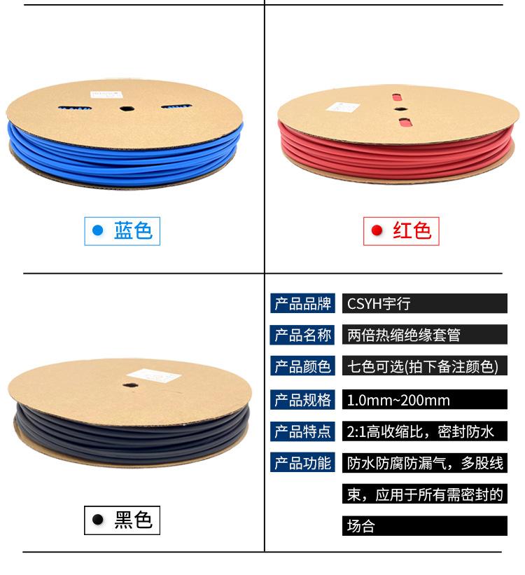 Tubo Termorretráctil Yuxing Manga Aislante 1mm Un Rollo 200m Tubo Termorretráctil Colorido Negro Resistente a Altas Temperaturas Manga Aislante