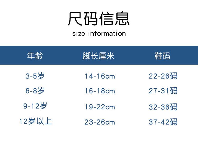 3-5 years old (recommended size 22-27), 6-8 years old (recommended size 28-32), 9-12 years old (recommended si...