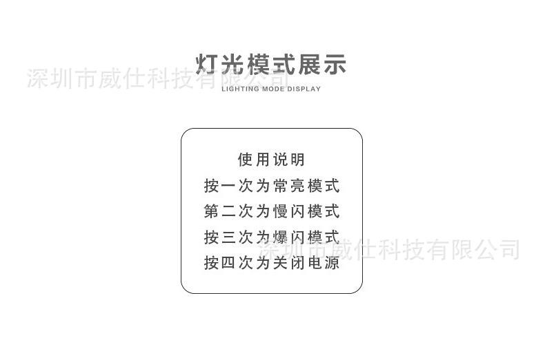 Función del producto: Luz constante - flash lento - flash rápido - apagado (cuatro funciones) interruptor de botón