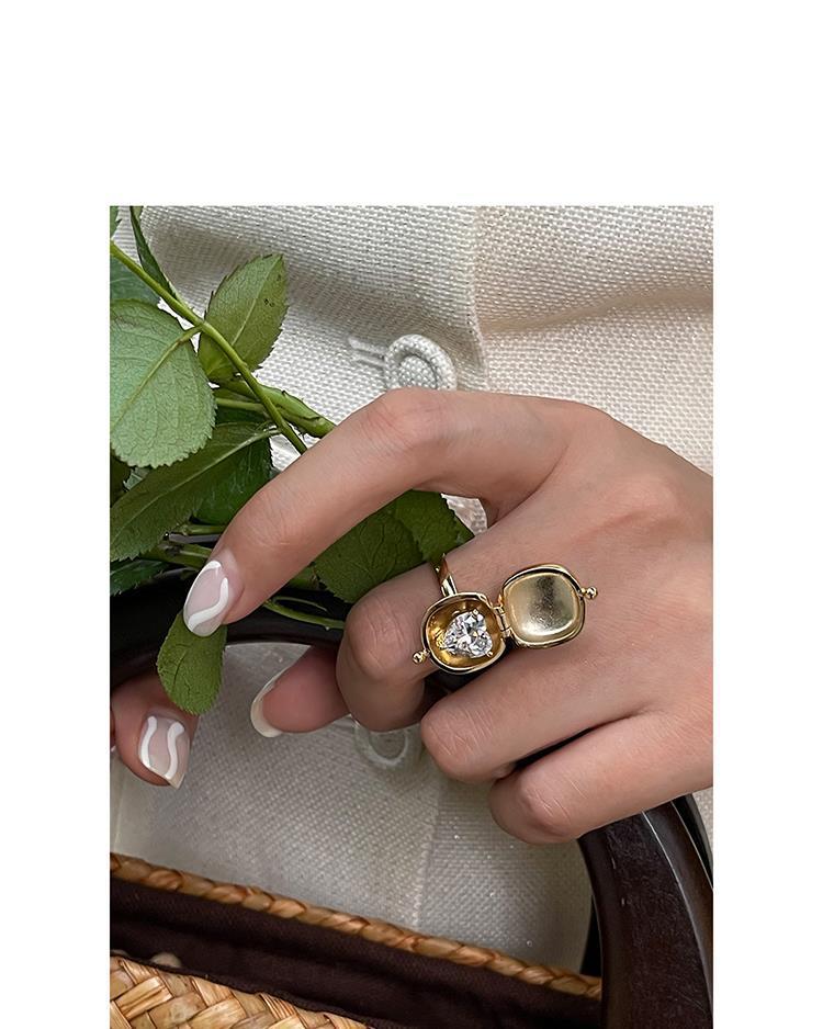 Diseño de alto nivel único que puede abrir la caja de fase de amor collar de circón anillo abierto moda femenina