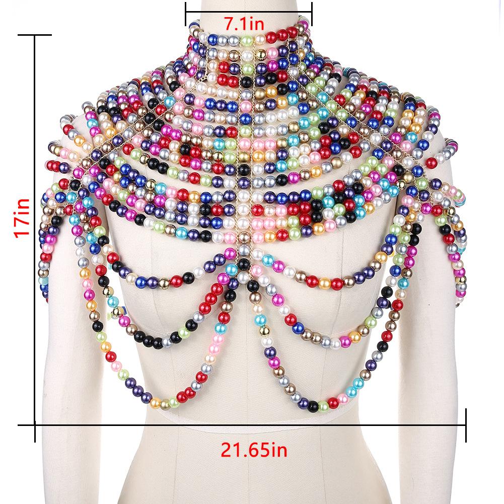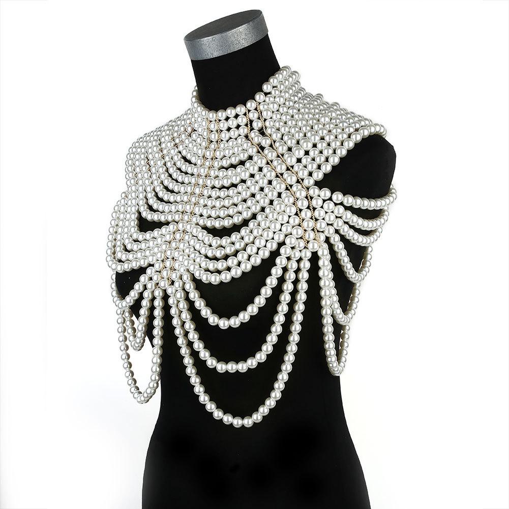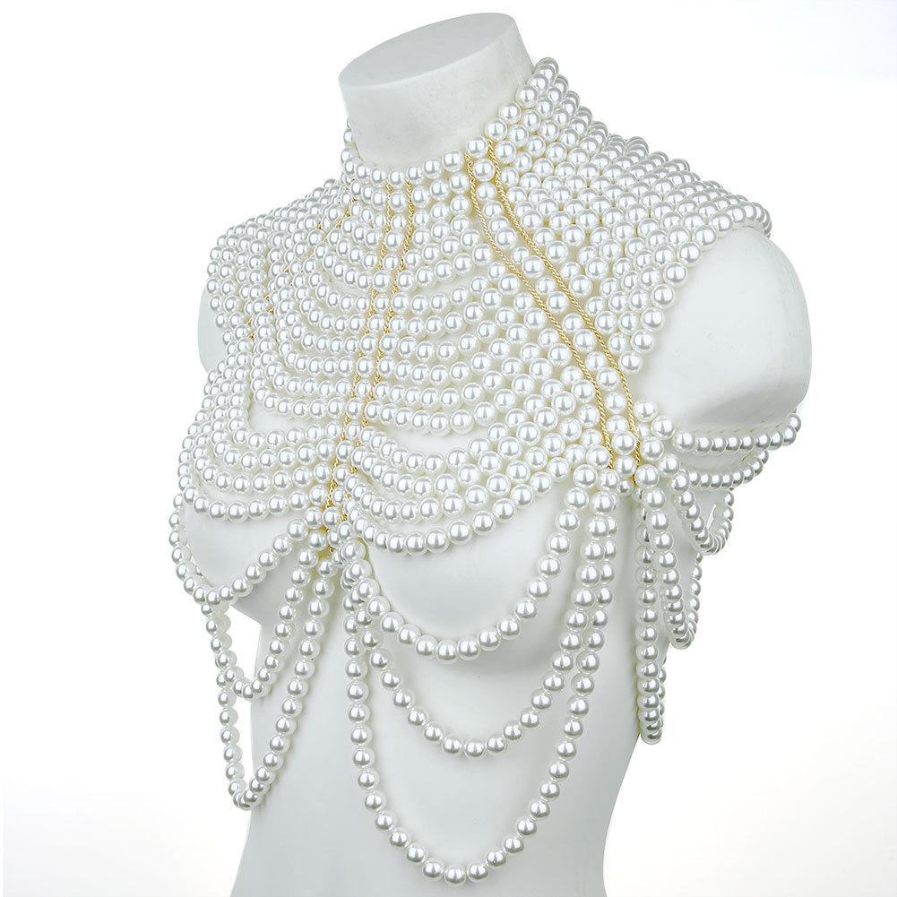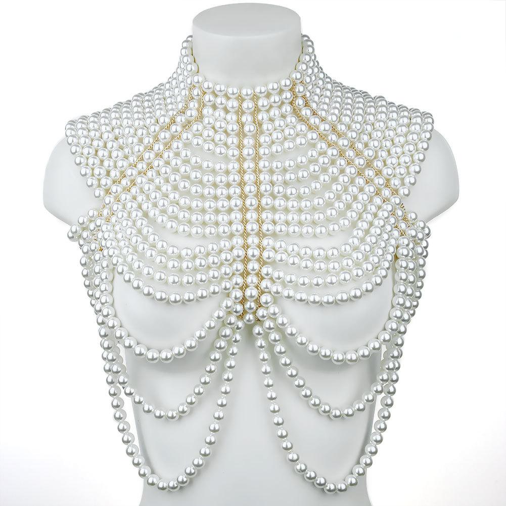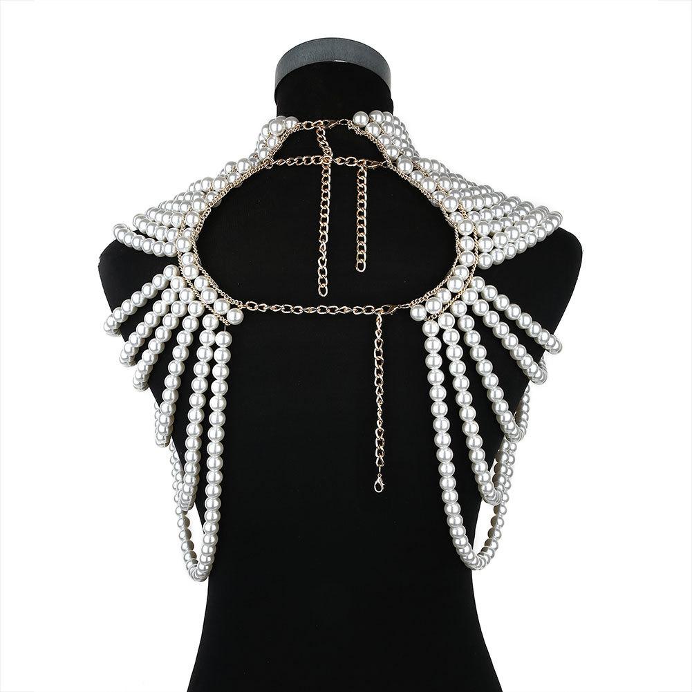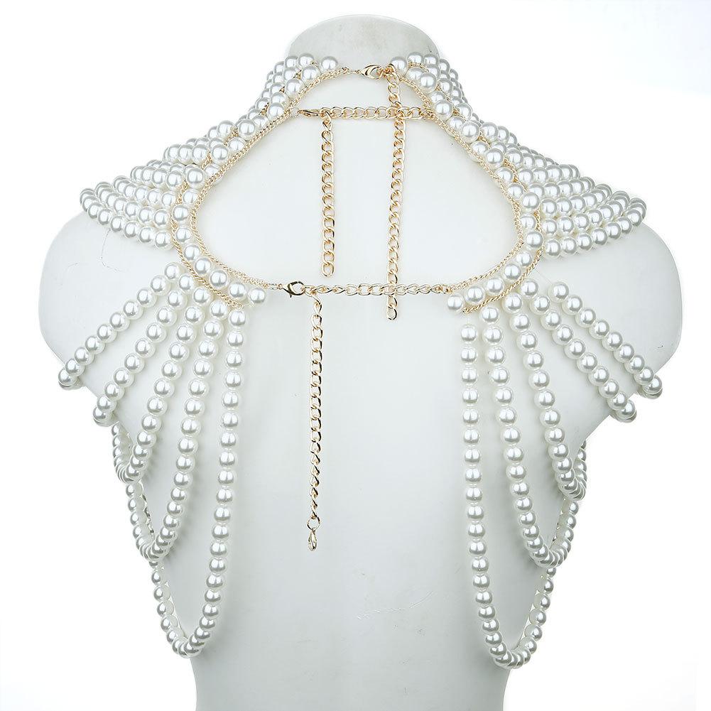 Joyería corporal tipo chal europeo y americano, cadena para el pecho de perlas estilo INS, moda femenina para fiesta, cadena de hombro de perlas, accesorios explosivos